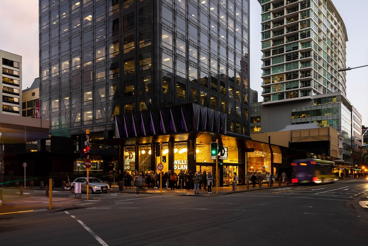 1 Willis Street is an iconic architectural landmark in the Wellington skyline, occupying a strategic location at the vibrant intersection of three bustling streets. As a cornerstone of Wellington’s celebrated 'Golden Mile', it holds a special place in the city's urban fabric. The project brief focused on the transformation of the below-ground level of the former BNZ building on Willis and Lambton Quay corner. This area, once home to a underutilised food court and empty retail spaces, needed renewal and a new commercial and urban life. Collaborating closely with our client Precinct Properties, we meticulously explored various options for this space, eventually settling on the subterranean hub offering a diverse range of food and beverage experiences “Willis Lane”.
