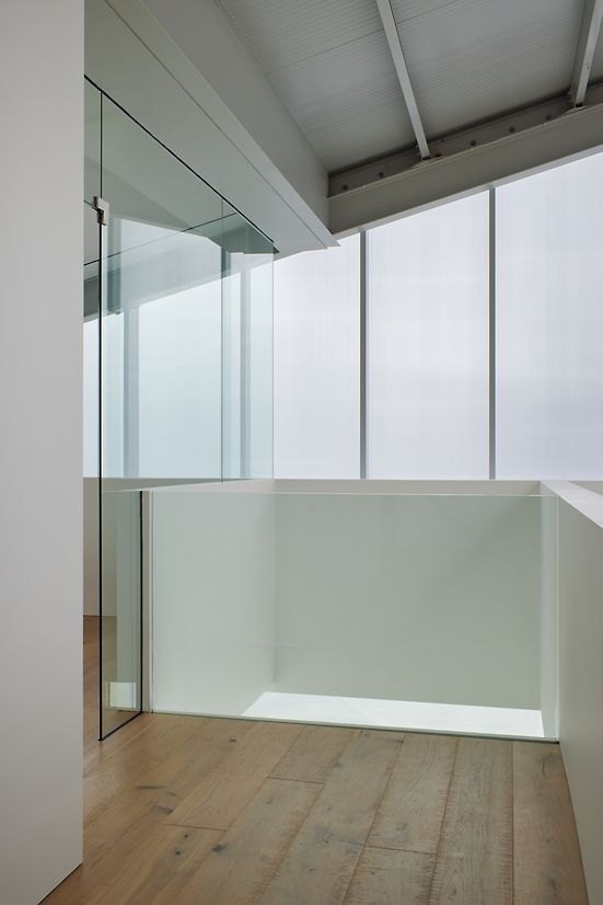 With the project being an adaptive reuse of an existing warehouse, primary material selection took cues from the existing condition, particularly the structural steel and concrete/masonry block skeleton of the building. A refined palette consisting of steel, cement finished masonry blockwork, timber framed walls and floors, painted plasterboard, polycarbonate sheeting and frameless glass seeks to establish a level of material efficiency by working in with the existing structure as much as possible. The intervention looks to allow the existing building to still be appreciated, while introducing a contemporary aesthetic by way of a carefully considered material palette and formal language – essentially an exercise in restraint.
