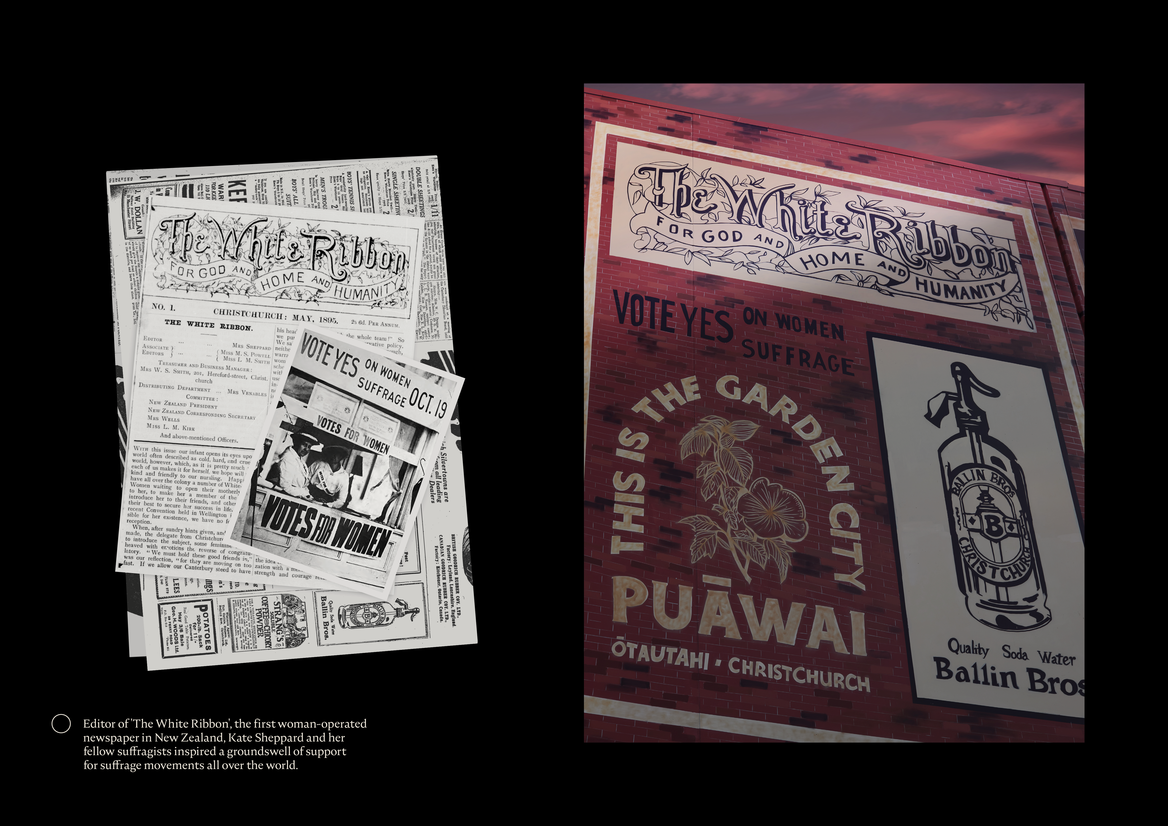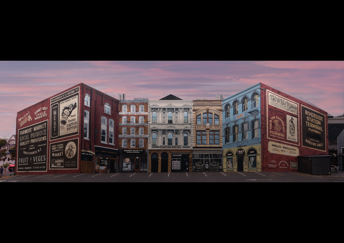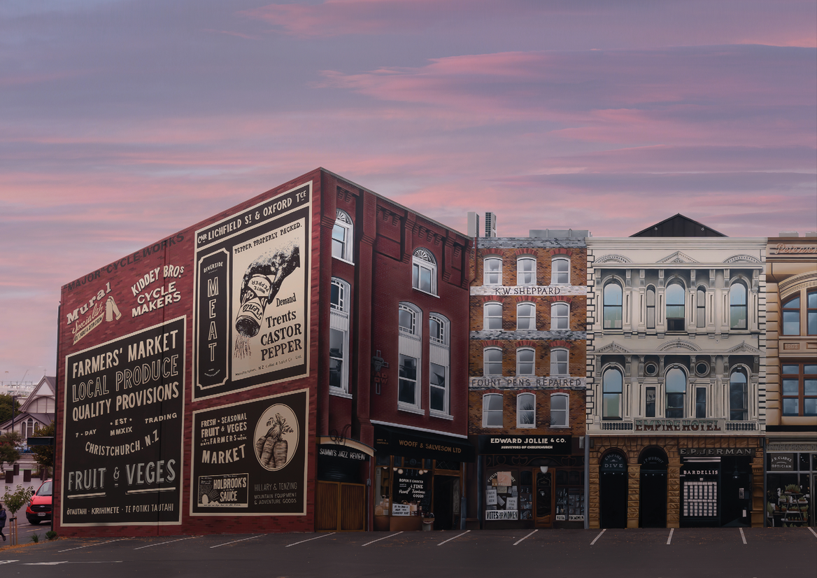 The wall was brought to life with key references to our central city heritage and architecture, remembering defining moments including Kate Sheppard and the broader women's suffrage movement (which started in Ōtautahi Christchurch). The buildings featured in the mural were once located in and around the site but were destroyed in the earthquakes, and the businesses mentioned on the shop fronts and walls each take their place in the memories of residents and visitors alike.