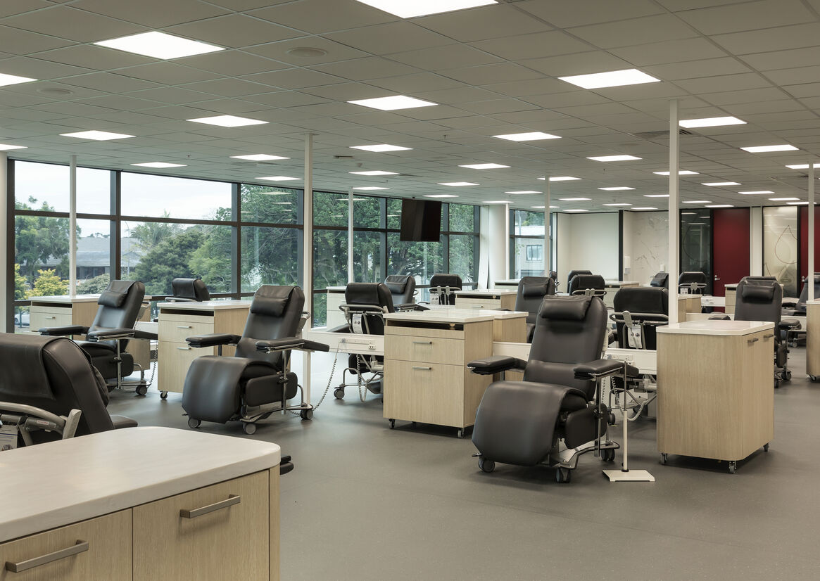 NZ Blood’s Epsom facility, the largest donor centre in the country, conducts whole blood and apheresis processes. They wanted to move away from a clinical environment where possible, making donor’s experiences welcoming to increase donor retention. Their vision was to enhance the existing spaces and develop a facility that provides an enriching space for the donors and staff helping to save lives every day.