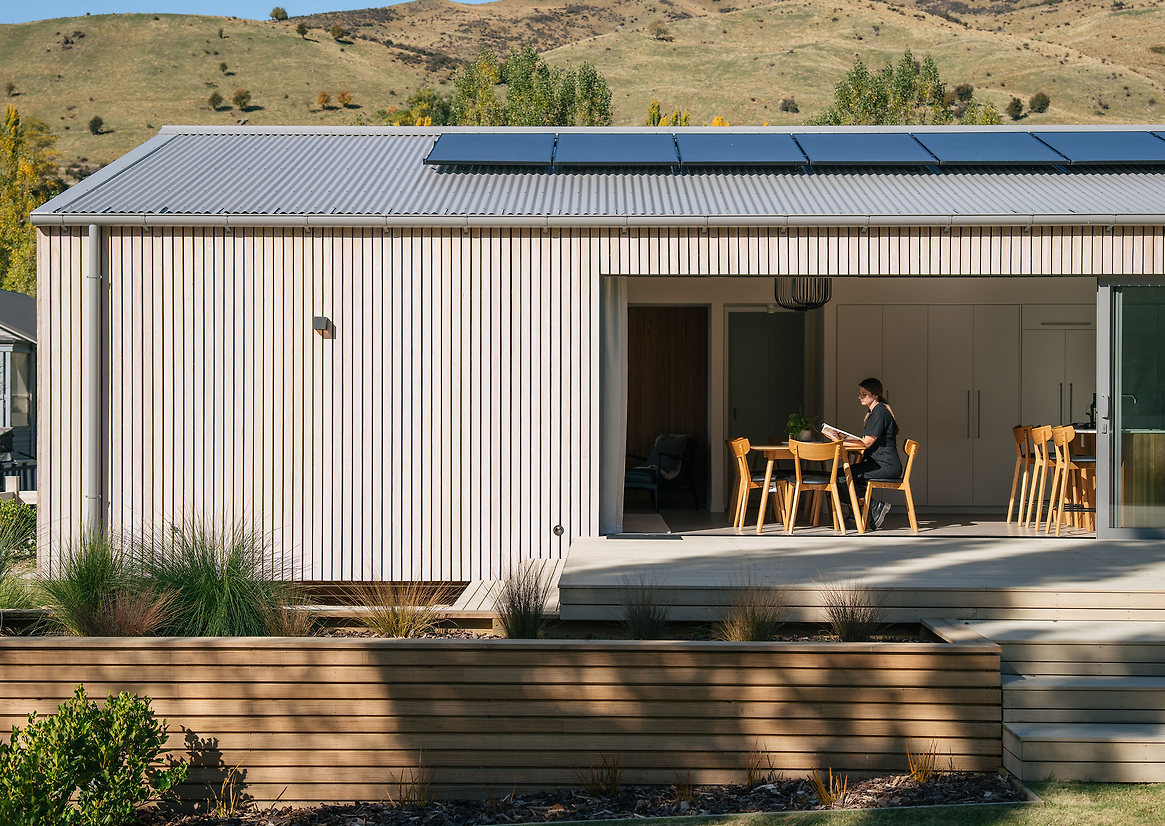 Whilst remaining in keeping with the traditional New Zealand holiday home or ‘bach’ in form and materiality, the houses utilise passive house detailing to push the building envelope to the highest performance levels, achieving a Homestar 7 rating. To align with the project’s affordability goals in an isolated location where access can be difficult, the homes were prefabricated in Christchurch and carefully moved to site by truck, near the iconic Cardrona Hotel.