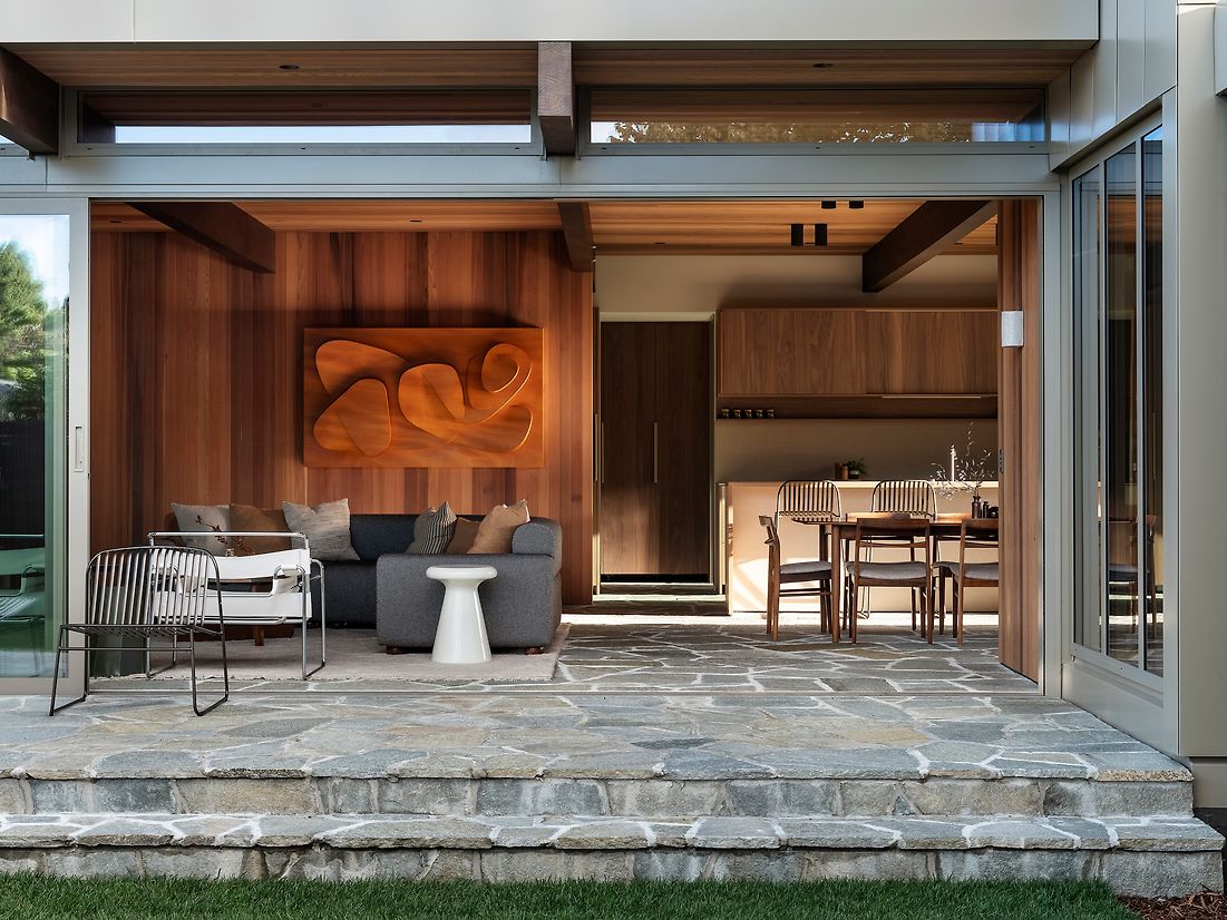 The selection of materials was developed from the client’s mid century memories. Their consistent application, from inside to out, describes key elements in the design and provides a sense of continuity for the project.