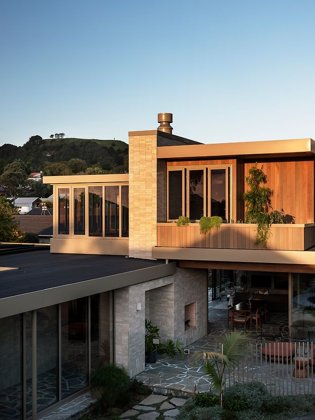 Prospect House is a contemporary new home situated on a generous site in Mt. Eden. The house enjoys a sense of prospect with views both within and beyond the site. The brief was to create a family home with a sense of ease and liveability. A home that would enhance the sense of connection to Maungawhau and the wider Mt Eden landscape, and at the same time, provide a sense of privacy and sanctuary through a connected series of spaces across the entirety of the site. Inspiration came from the client's memories of her grandparents mid-century home which was built around a courtyard and expressed a cosy ambience through a soft palette of textured materials. The new home responds to this by drawing on the principles of modernist architecture to develop a fluent design language that extends from the exterior articulation of the home to the resolution of the interiors. The clients were keen to experience the site in its entirety, so the building is stretched along the length of the site, and arranged to create a series of courtyard spaces each with their own purpose and character. This approach provides the home with opportunities to connect to views beyond the boundaries, and at the same time, creates spaces that are private from neighbouring dwellings. Intrinsic to this strategy was consideration of movement through the home which has been designed to “guide” the occupants through each space in a relaxed and easy way. The plan is organised on a regular structural grid, which provides some rigour to the layout and lends a rhythmic ease to the way you move through it. The selection of materials was developed from the client’s mid century memories. Their consistent application, from inside to out, describes key elements in the design and provides a sense of continuity for the project. Ultimately what elevates the home is the sense of ease and serenity you feel when there. Varying volumes create a series of different spatial experiences as you move from room to room, while light has been carefully considered to bring life to the home’s rich palette of materials and to chart the passing of time throughout the day and year. Quiet detailing minimises visual disruption allowing materials and furnishings to take the spotlight and enhancing connections between spaces both within the home and to the wider landscape beyond.