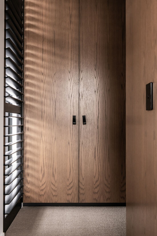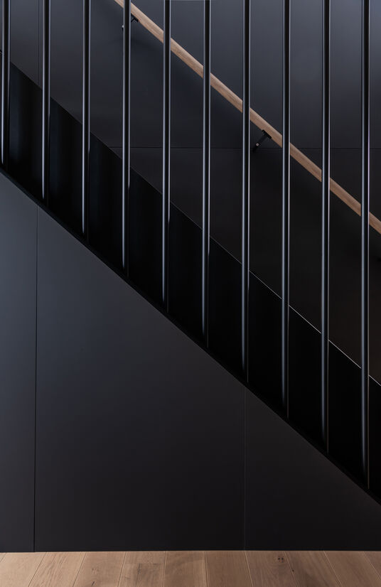 Designed for a young family of six, the efficient linear floor plan provides privacy to the public face, spaces for both togetherness and separation internally, and seamless connection to outdoor living opportunities in a private garden setting. Robust yet timeless materials are used both inside and out, provided through a natural palette of timbers, concrete and exposed steel surfaces, detailed with purpose and resolute.