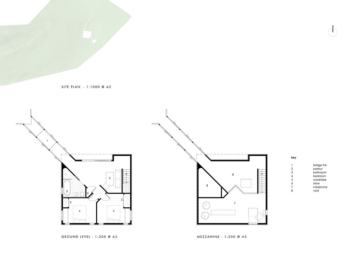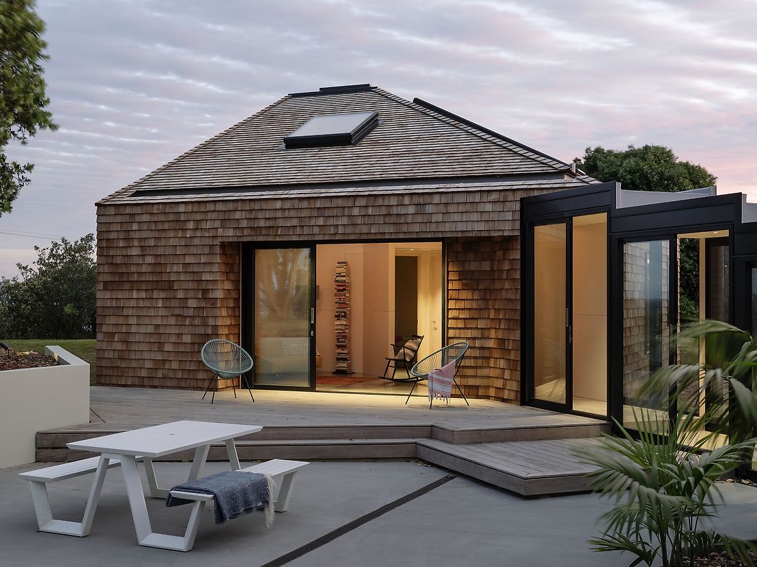 The brief was for two bedrooms, bathroom, living, and office spaces. The extension provided an opportunity to capture the spirit of the family in a new architectural gesture, take advantage of previously uncaptured views, and create a north-facing outdoor living area/courtyard that links the new and the existing.