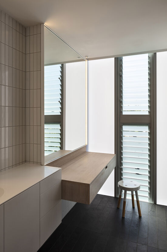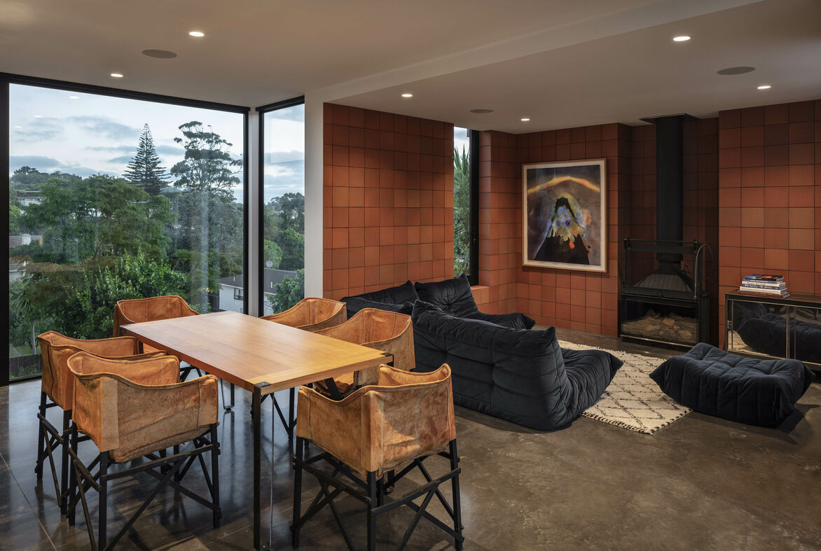 The steep sloping site provided challenges and opportunities. The kitchen/dining/living area connects to a north facing private pool courtyard and views down to the landscape below on the southern side.