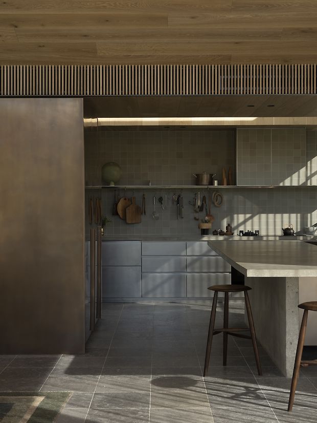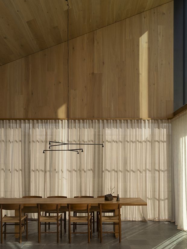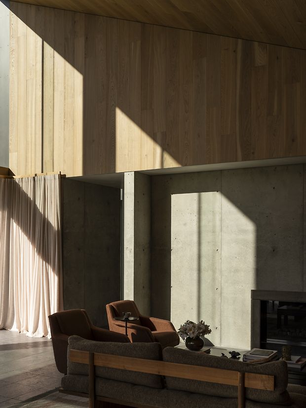 Strict planning rules shaped the design approach. A required 22-degree roof pitch inspired bold mono-pitched forms reminiscent of local agricultural sheds. These simple, sculpted volumes are arranged around a central courtyard and aligned to light, views and privacy, creating a home that supports both communal life and independence.