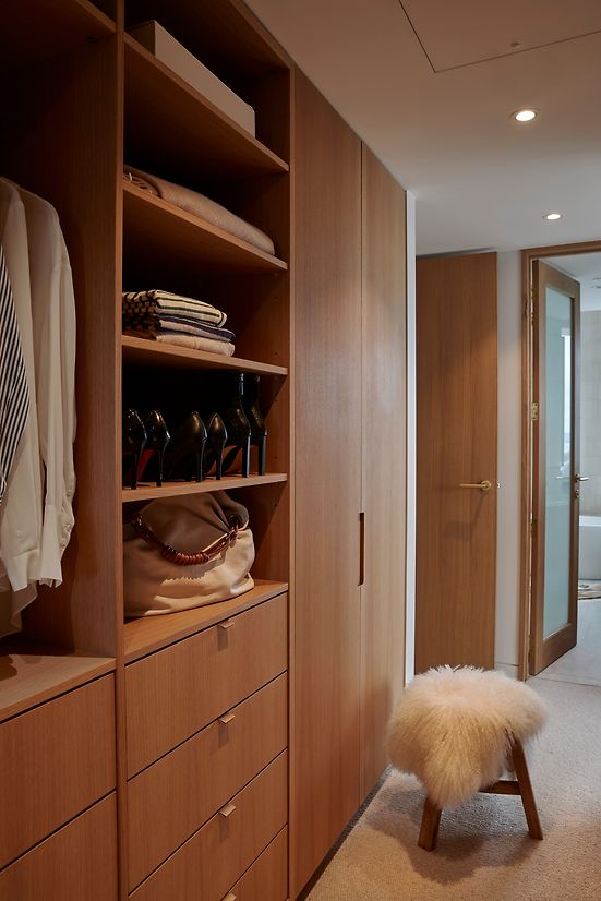 A large, dated 80’s apartment was stripped and made over, with a complete re-plan and refurbishment. City and sea views were reallocated to living and bedroom spaces respectively; the buzz of the city for socialising; the calm of the sea for retreating. A sense of entry was created with a defined, elegant and welcoming lobby space. Views and sunlight were analysed and brought into the apartment with better planning and spatial design for every room, to avoid the previously closed-in and slightly claustrophobic feeling the apartment had. Plenty of storage was added throughout and clear spatial boundaries were set up between all the bedrooms, allowing multi generations to have their own sense of space and privacy.