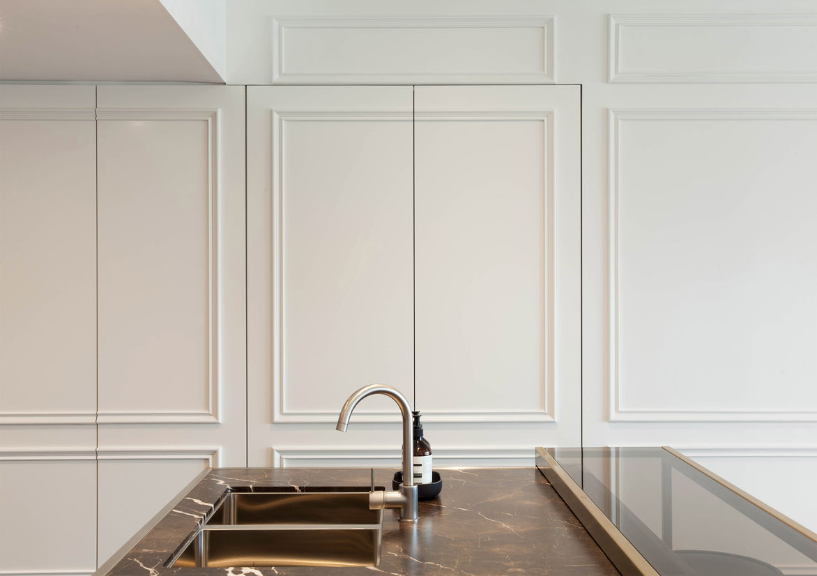 A very accomplished, elegantly proportioned exercise in detailing. Restraint is exercised where excessive embellishment is so often the temptation. Materials and fittings are curated with consistency throughout; achieving a beautifully composed outcome.