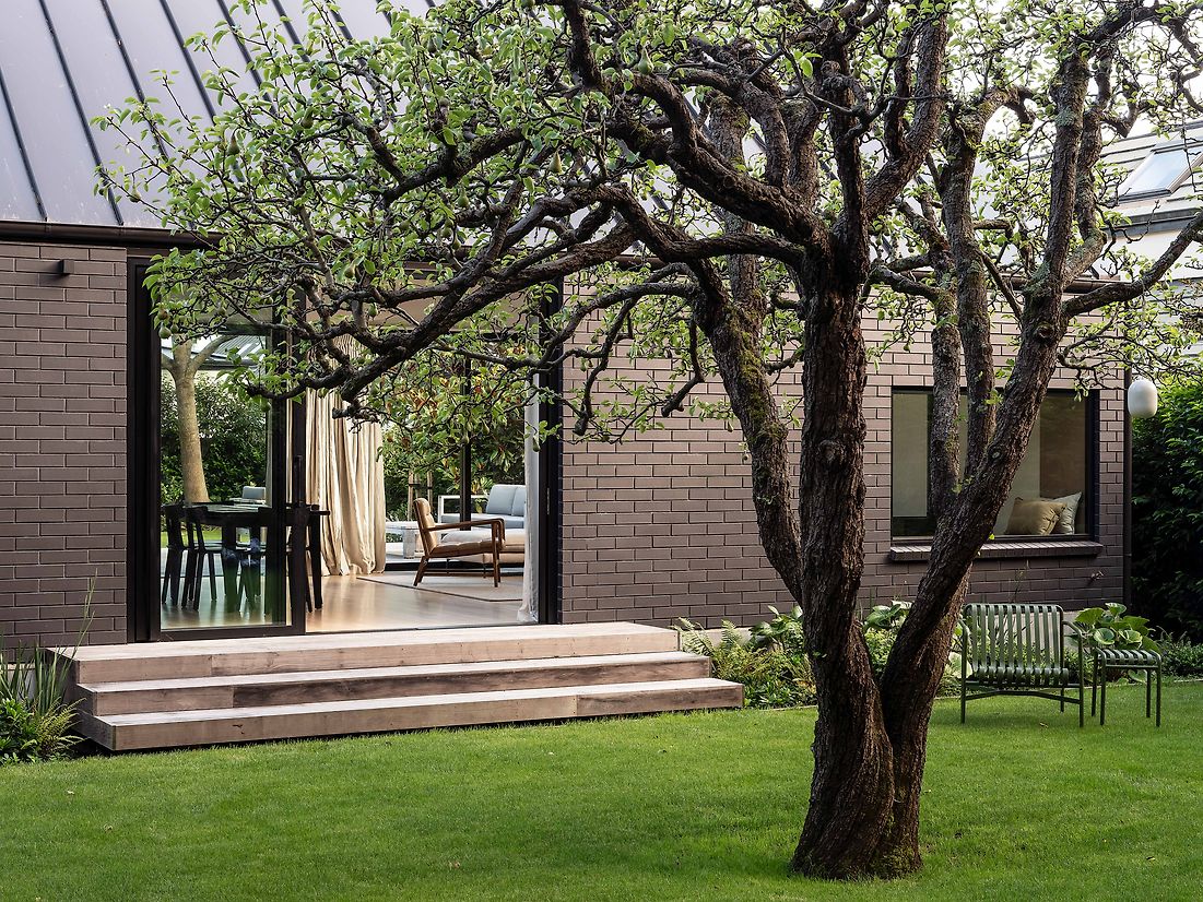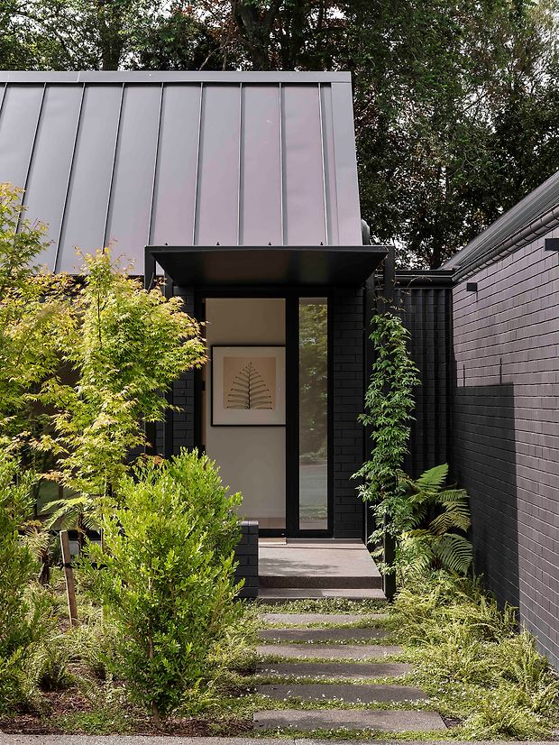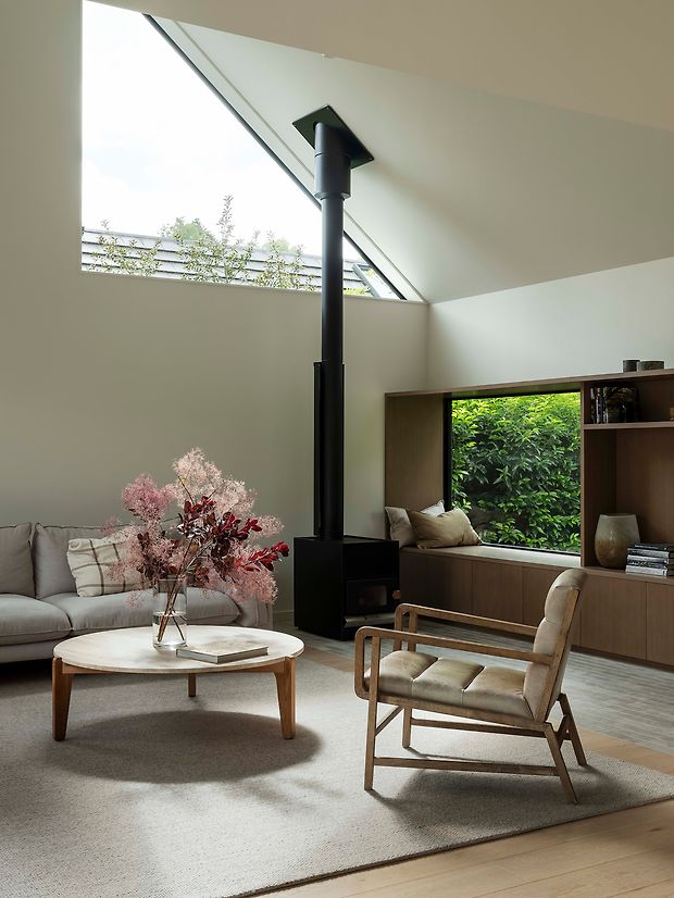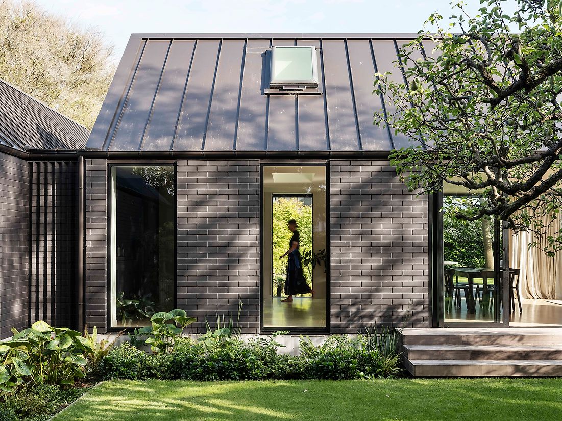 The design follows the logic of the old home, with two gabled forms sitting more or less within the original footprint. The longer pavilion houses the sleeping quarters, snug, and garage, while the other accommodates the public areas — the kitchen, living, and dining. Dog-toothed brick articulates a purposeful break between the forms and extensive glazing opens view lines in and through the house, framing key moments, like the mature pear tree in the backyard. Although built to a strict budget, Garden House is careful to incorporate window seats, hidden gardens and various 'in-between’ areas that deliver the space and separation the family will need as the children grow.