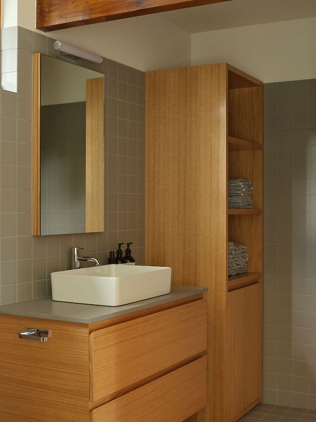 When the clients moved into this 1960s Don Cowey-designed home, it was in relatively original condition — save for a failing 90s bathroom renovation. Keen to retain its architectural heritage whilst reshaping the experience around their young whānau, they staged a renovation: extending and reimagining the main bathroom and laundry, refinishing the ensuite, opening up the confined galley kitchen and adding a pool.