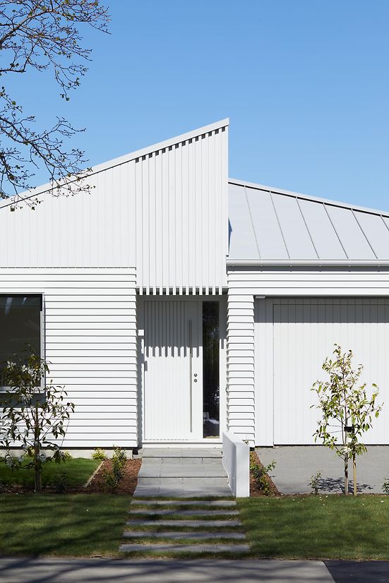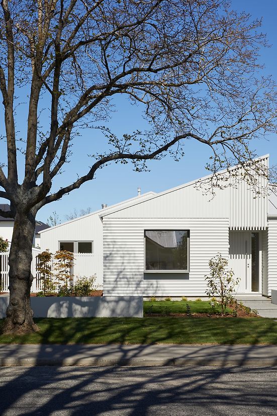 Split Hip is a post-earthquake new build that responds to the character of the traditional bungalows surrounding it. The single-level home borrows elements of the classic design, shrewdly reinterpreting the weatherboard cladding, simple hip roof and traditional street-front porch entry.