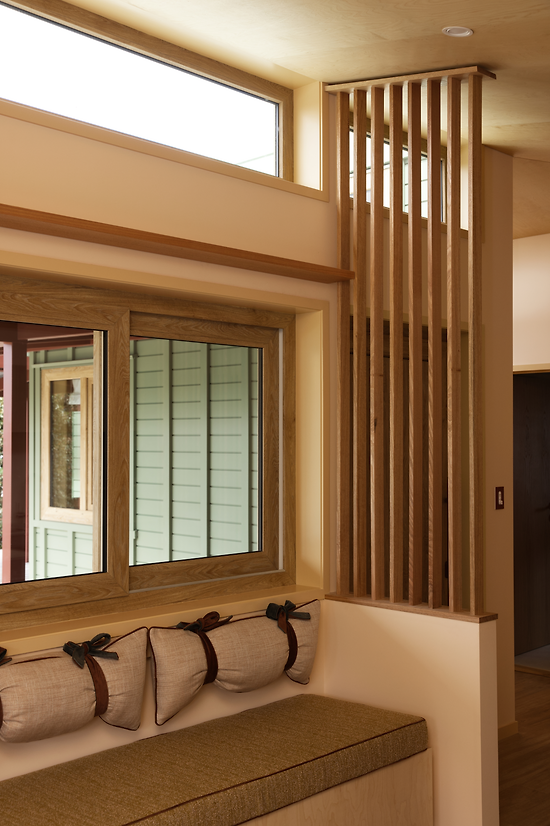 The concept strongly focuses on human wellbeing and spatial functionality, tailored to meet the needs of an individual living with dementia. Familiarity, privacy, wandering paths, visual sight lines, and a palette of natural materials were the key sub concepts identified through our briefing process and research. Physical comfort also became of high importance to provide ease of living for Sue now and in the future.