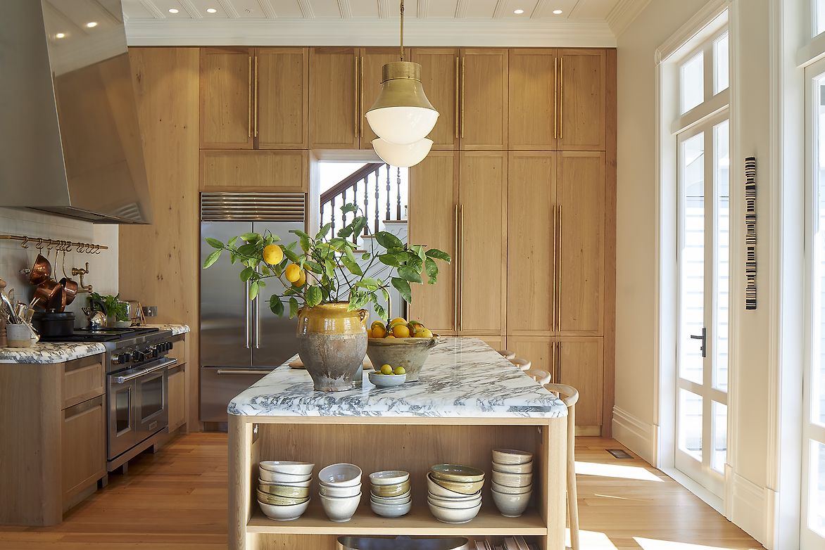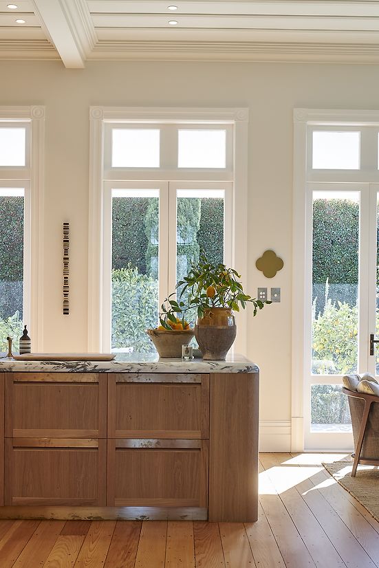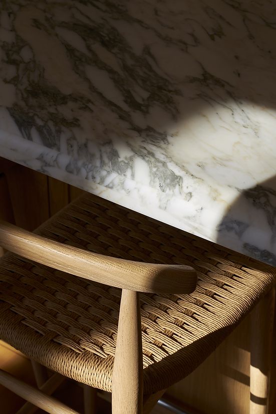 Materiality was paramount to the design and the palette of Arabescato marble, brushed character oak, hand-cast tiles, seagrass, and natural brass borrows from a time-honoured classicism, with subtle cues to an enduring European aesthetic. The rustic nature of the finishes is complimented by the client's collection of modern art, resulting in an atmosphere that feels contemporary but harmonious with the character of the house.