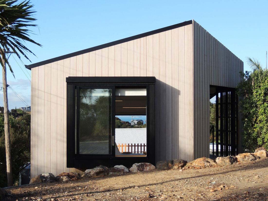 This small project brief called for additional living and sleeping space added to an existing historic bach on Waiheke Island, as space for extended family to stay. We diverted away from the intent of an addition to the existing building, after consideration of the attributes of the overall site, and a desire to retain the characteristics of the existing historic bach, which we felt was deserving of holistic conservation.