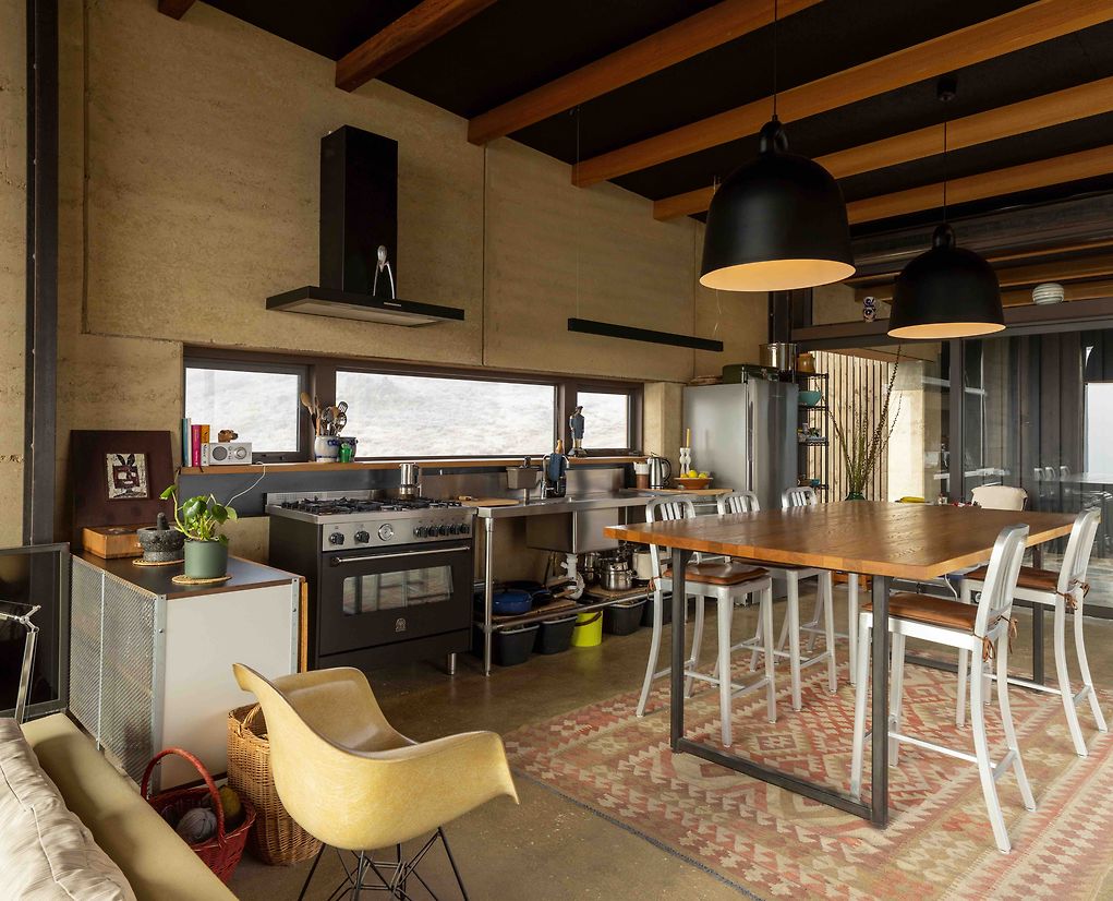 Like all building projects we also had a budget to keep in mind. It was decided we would allow a series of 'buildings' to work together and minimise the overall scale of the build. The couple resided on the site in an Airstream caravan which remains as guest accommodation, we built a small timber framed studio space with bathroom as additional guest/office and the main Rammed Earth House which the couple were to live in predominantly to be the centre piece. This includes living area with kitchen connected via an outdoor room/breezeway to the main bedroom and bathroom.
