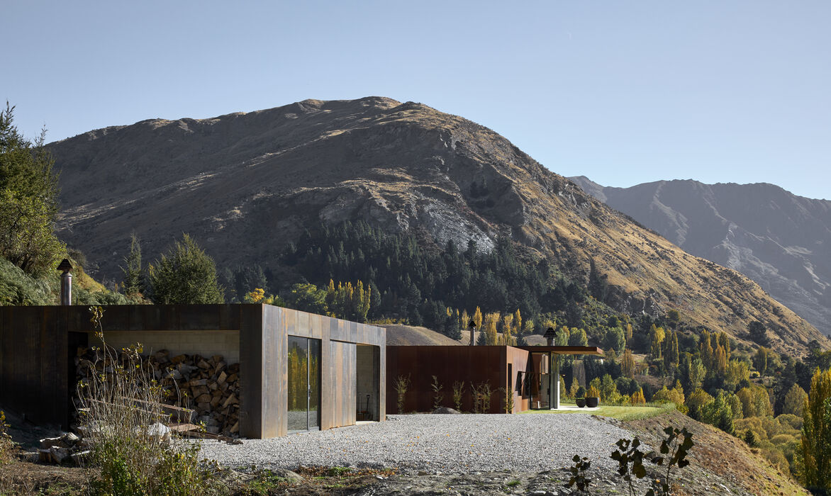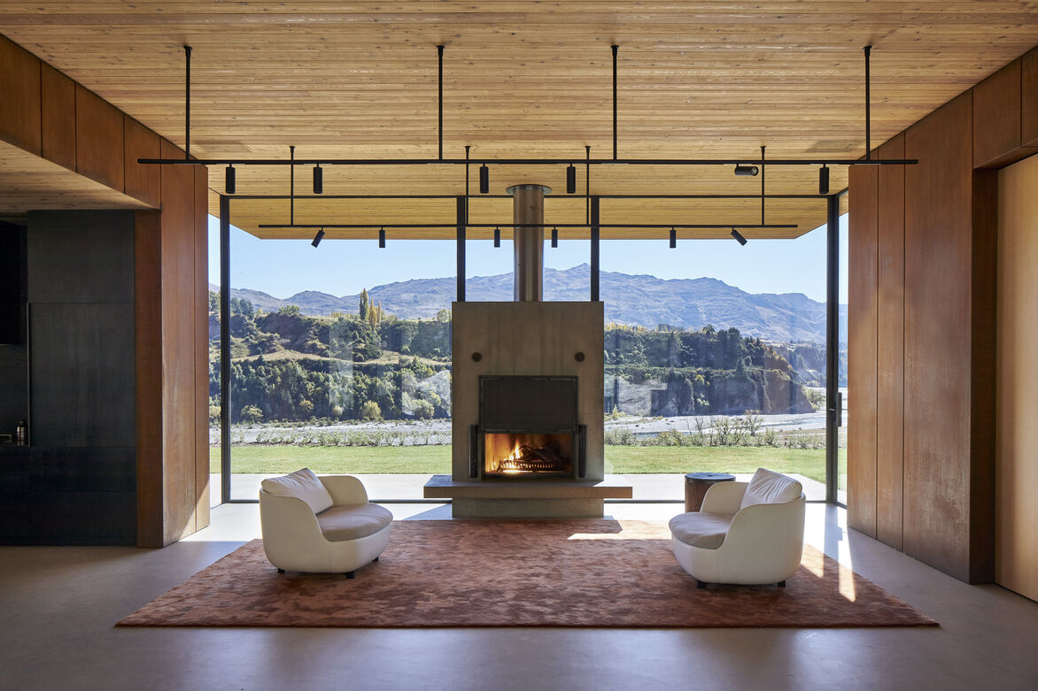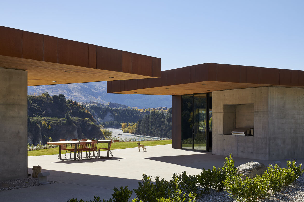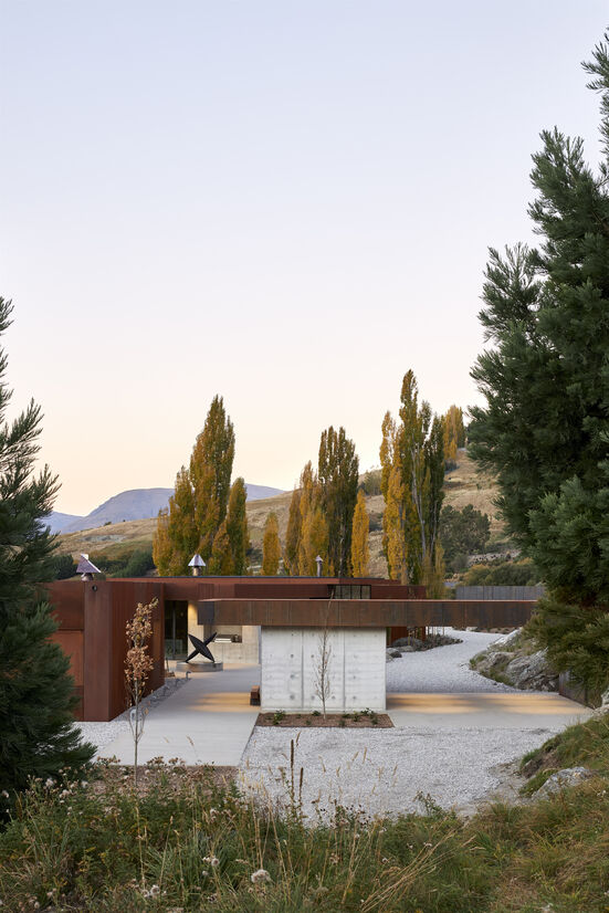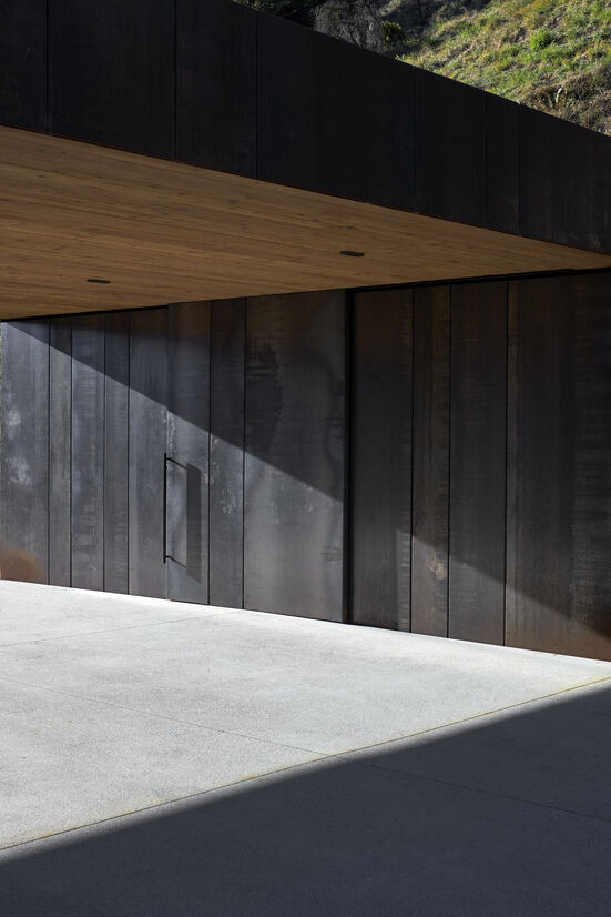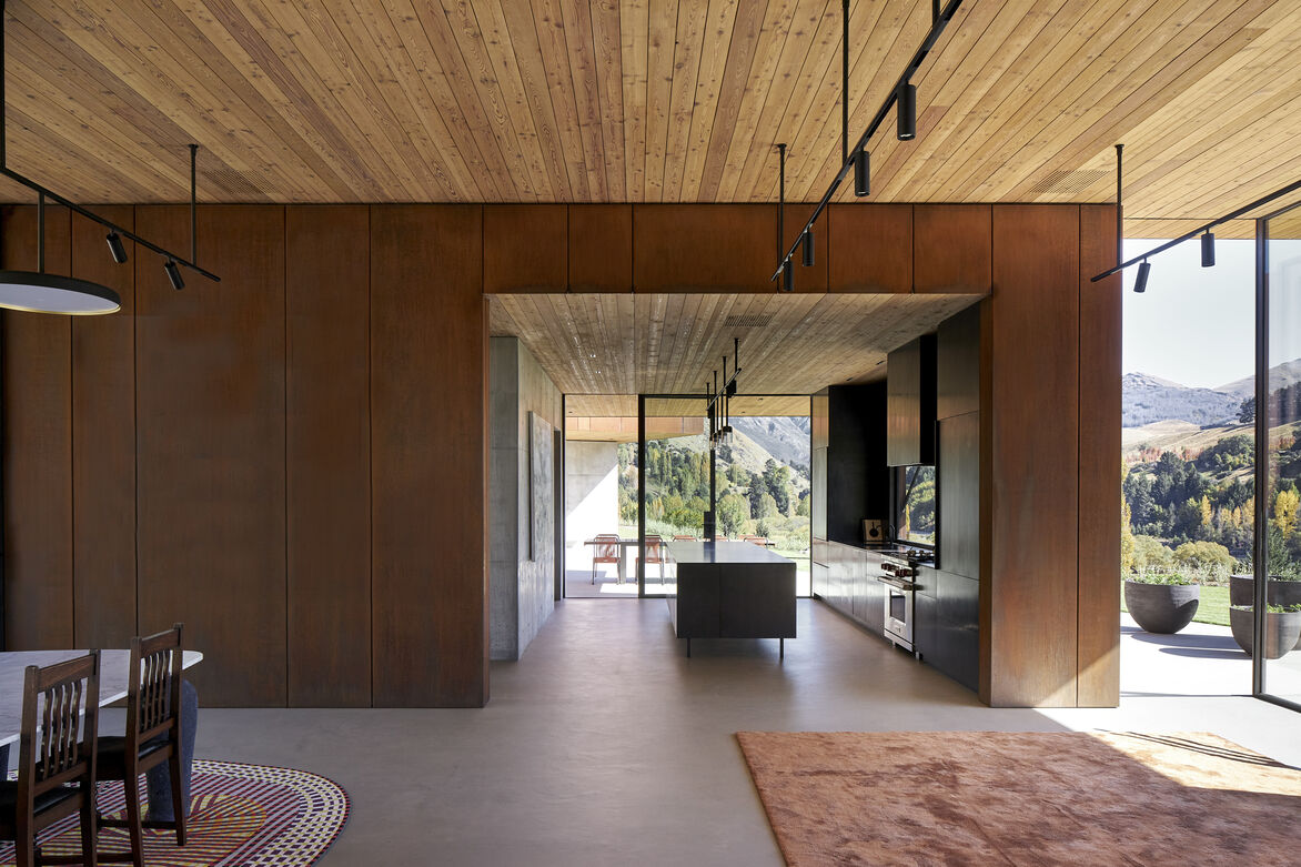 The material palette is restrained both inside and out: Corten steel, off-the-form natural concrete, and blackened steel joinery, allow the house to blend into the surrounding landscape. Each material is left to express its own honest and living finish.