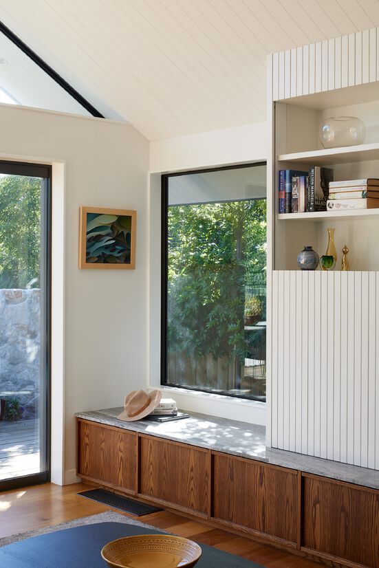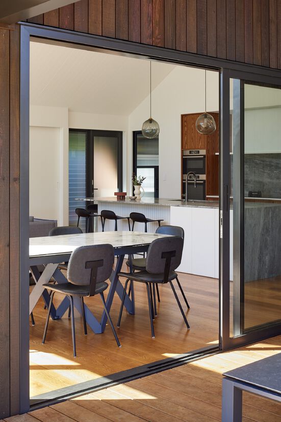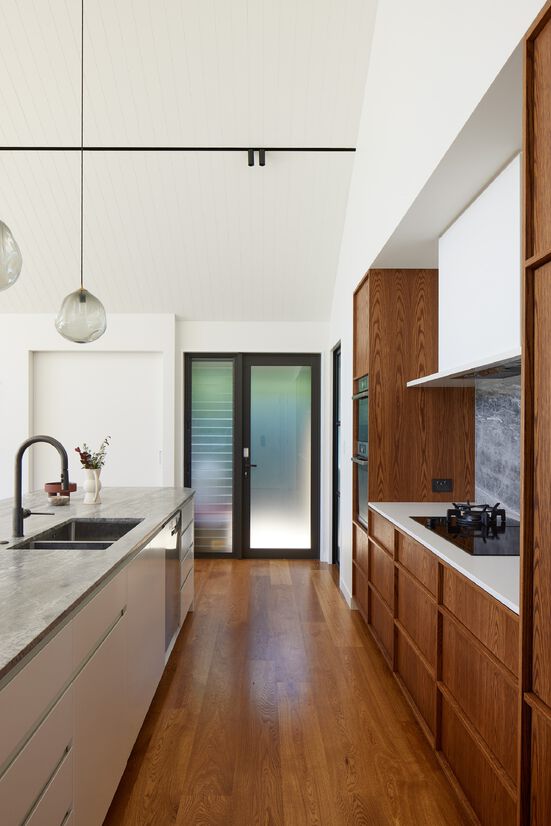 We utilised the high pitch of the roof to create a new open-plan kitchen, dining and living area with a snug plus a new master suite and garage.