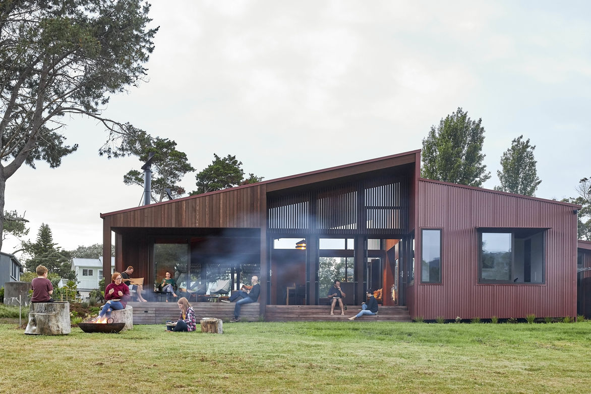 Drawing aesthetic inspiration from the vernacular red shed across the adjacent banks of the Pungapunga river, Waipapa provides a family beach retreat that sits peacefully within its rural landscape. Westerly aspects over the river to rolling green hills are a rich contrast to the white sand and surf of Whangapoua beach, a short walk to the north.