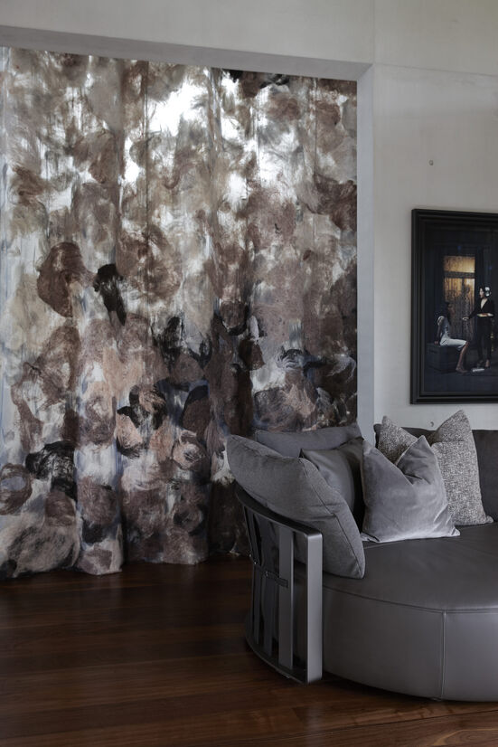 There are many show-stopping moments, including the six-meter high felted screen drape commissioned for the home by ClaudyJongstra, felter and artist. This beautiful soft element softens the spaces visually and acoustically and can be drawn across to provide separation and a sense of intimacy.