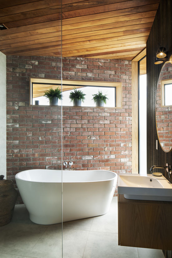 The recycled brick that we sourced was chosen to line the internal faces of the pods to create a sense of shelter and permanence while also giving a sense of a past history and reuse. The bricks accentuated the curves of the pods with the hand of crafts person embedded in the finish. The depth created in the wall cavity because of the internal brick also provided us with the opportunity to work with highly skilled joiners to craft deep timber reveals for the window and doors that created a strong sense of transition between spaces.