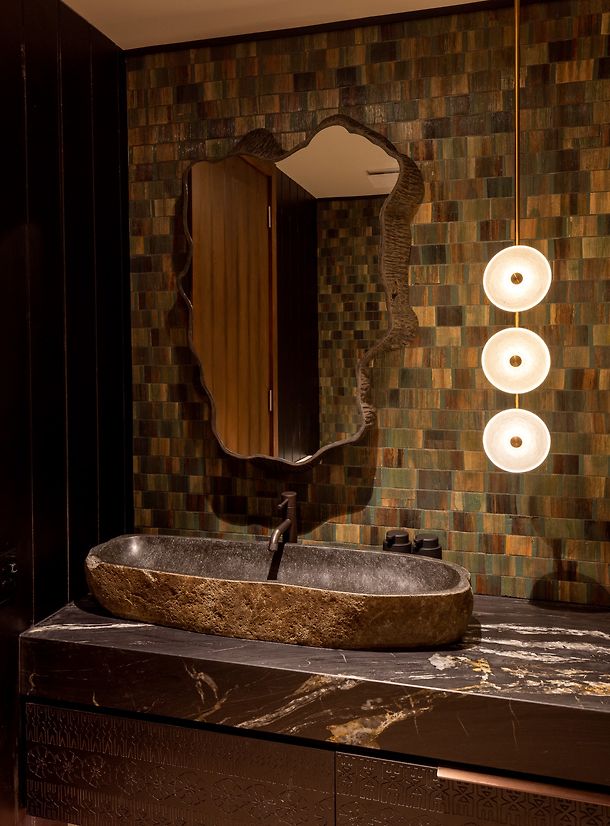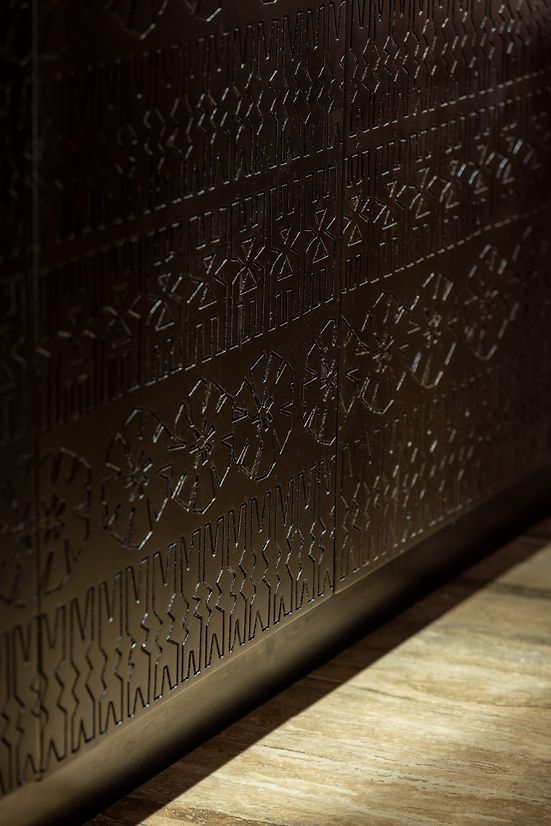 The custom leathered travertine floor was an early decision in the home & set the foundation for the material decisions that followed. The materials were selected for their lustre, tone & texture, it was crucial that they shone in their own right, whilst providing the perfect backdrop for vivid colour to be layered over the top. Materials endemic to Fiji such as swamp raintree & magi magi were used where appropriate, as were materials such as Oamaru stone in a subtle nod to NZ. The single most important detail was the carved faces to the joinery throughout, embellished with patterns designed by local iTaukei artists, the inclusion of the carving adding a depth to the layers of the home.