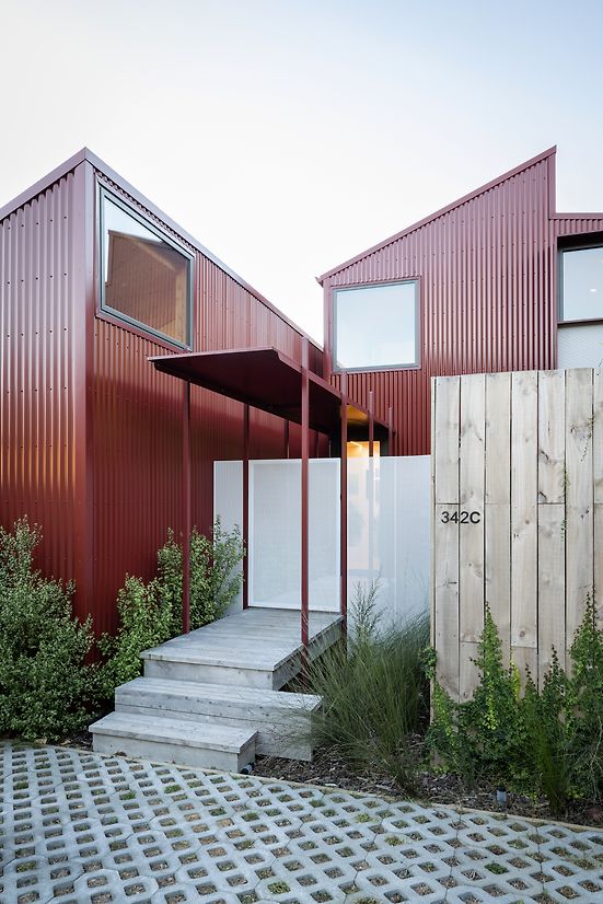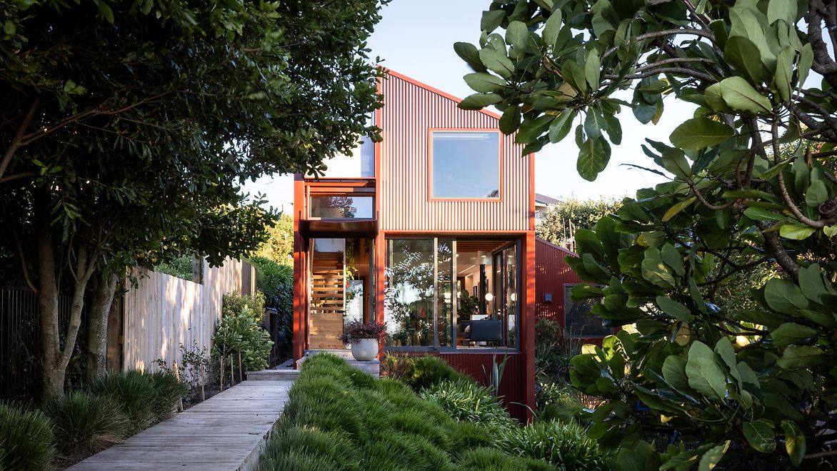 Drawing inspiration from the site’s rural past, the house pays homage through the use of claddings reminiscent of vernacular red sheds. Splitting the building along the axis of the historical farm access track it occupies, the design integrates with the landscape, embracing its surroundings.