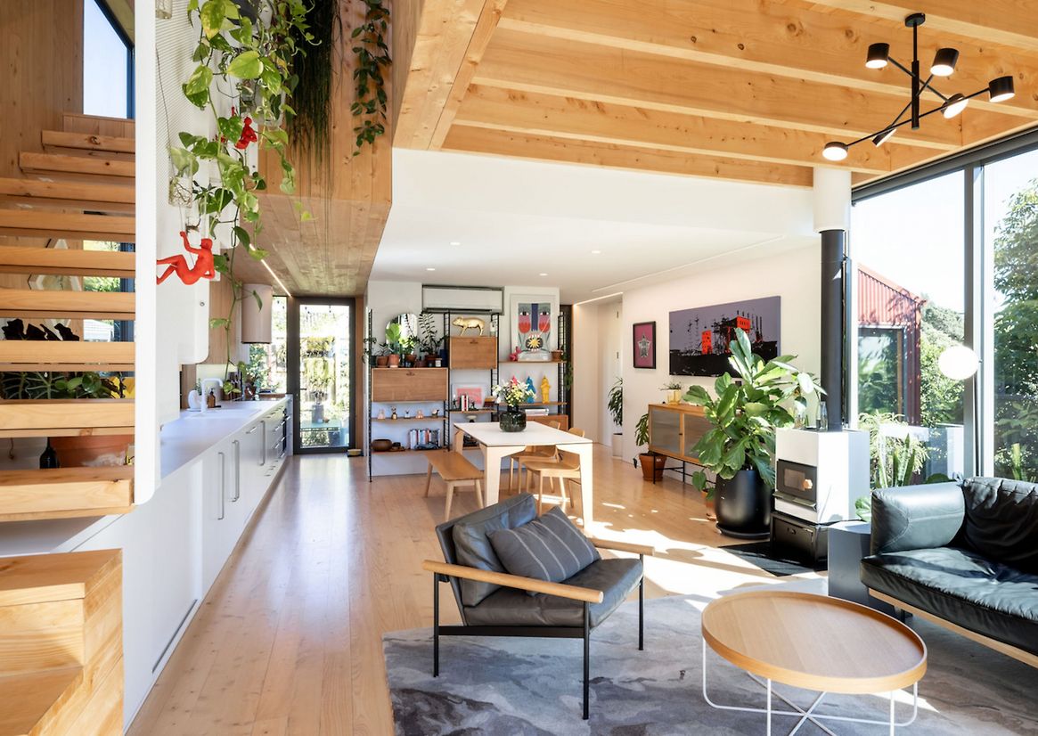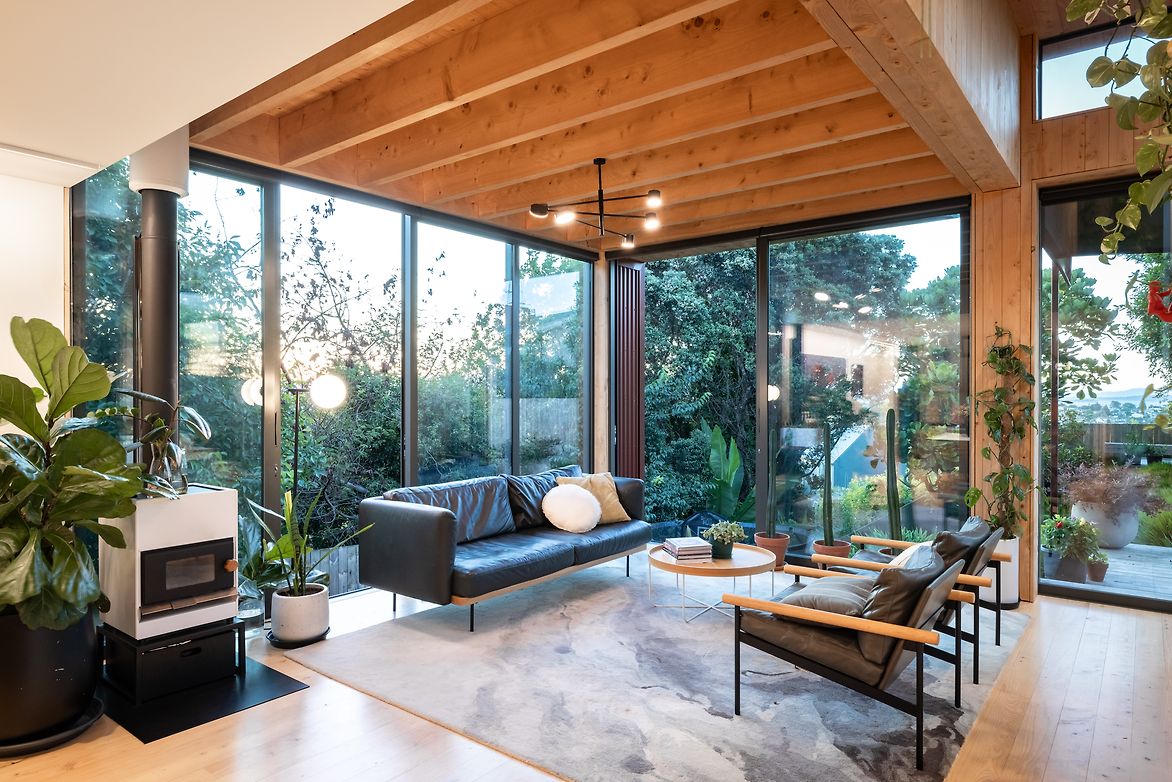 The building is crafted to engage the senses. Cypress timber, left unsealed to breathe and exude its natural fragrance, invites tactile exploration. Corrugated iron and single skin canopies invite the soothing rhythm of rainfall, while the texture of vertical iron beckons one to run their hands along its surface, creating a symphony of sensations. The softwood interior timbers, intentionally selected to age gracefully, bear the marks of time, weaving a narrative of the occupants' lives into the very fabric of the home.