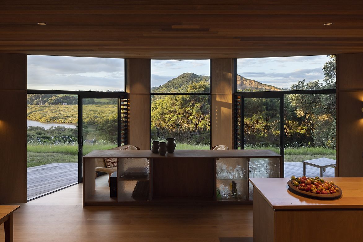 This House is located on a rural site on Waiheke Island, overlooking Anzac Bay and a mangrove swamp. The owners have lived here for many years, in a barn, with the intention of building a permanent home. There is a long, historical connection with the site.