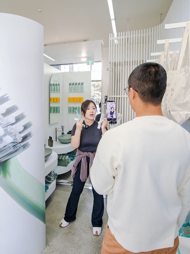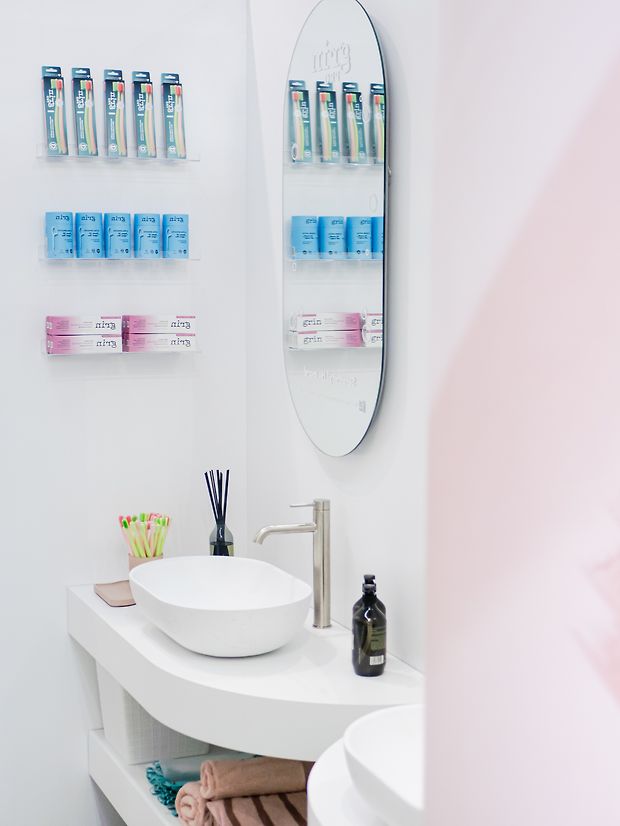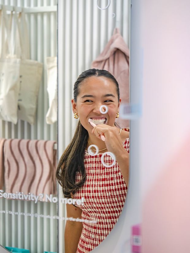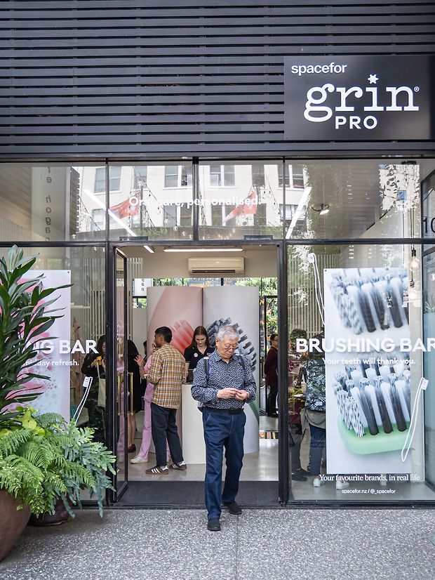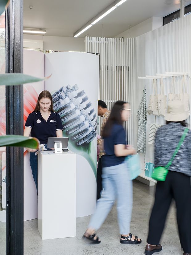 Nestled between Juliette Hogan and Ortolana within the Britomart Pavilions, this activation to celebrate the launch of the Grin Pro toothbrush range brought modern, functional bathroom vanities to the heart of the city. With the goal of helping to educate consumers on the importance of personalising your oral care, the activation enabled customers to learn more about how to tend to their unique oral care needs, and make an educated choice in the seemingly overwhelming oral care aisle.