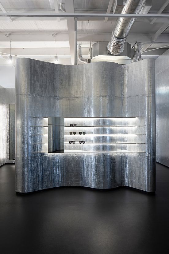 SGC’s products demonstrate innovation in material expression and performance, which needed to be reflected in the retail concept. Silverfoil-coated insulation foam was re-purposed as lining material on the rippling internal walls, creating a unique texture and subtle mirroring effect. This industrial product, rarely applied as an interior lining, captures the spirit of SGC’s rebellious and creative identity.