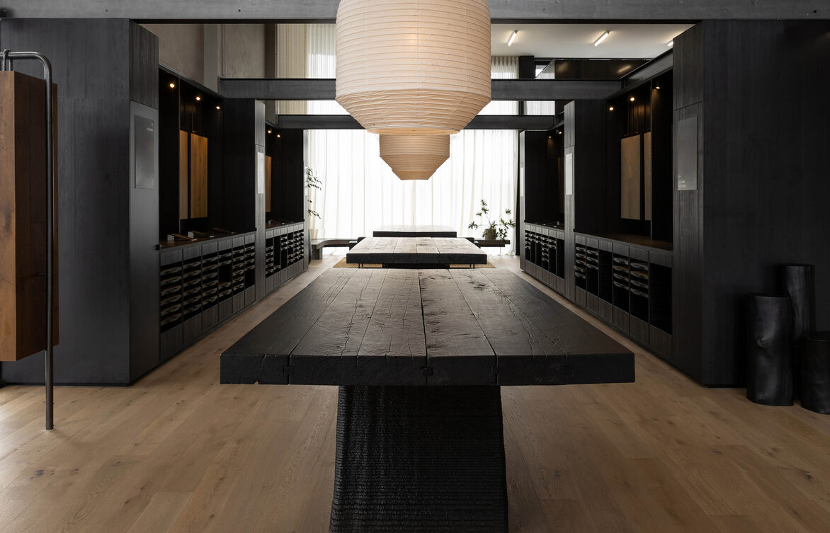 A beautiful retail environment that quietly but confidently demonstrates a variety of products in context. Experimental material finishing is used carefully to create a tactile and inviting space. A showroom which truly utilises and celebrates the product on display. Intentionally pared back, this project successfully displays the beauty, starkness and versatility of timber.