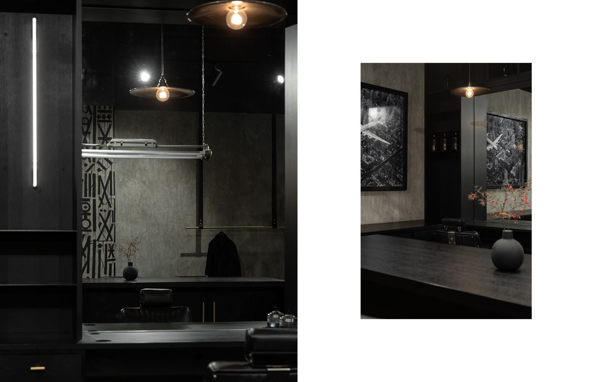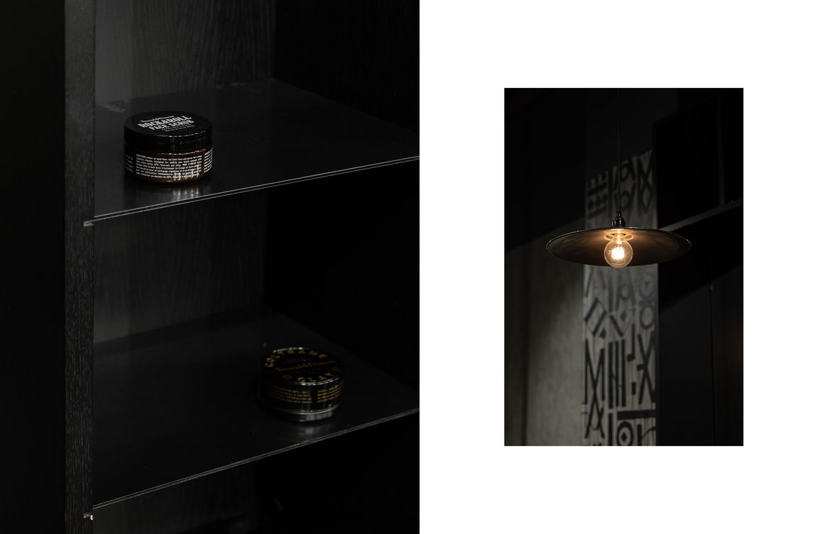 Well done in its ability to fuse the notion of personal grooming with strong masculine industrial aesthetic to create a distinctive identity. Capturing the moodiness and luxury of a velvet smoking jacket, this is a clever take on your traditional barber's shop.The embodiment of an intimate and elegant experience, with great care for the details.