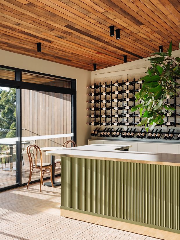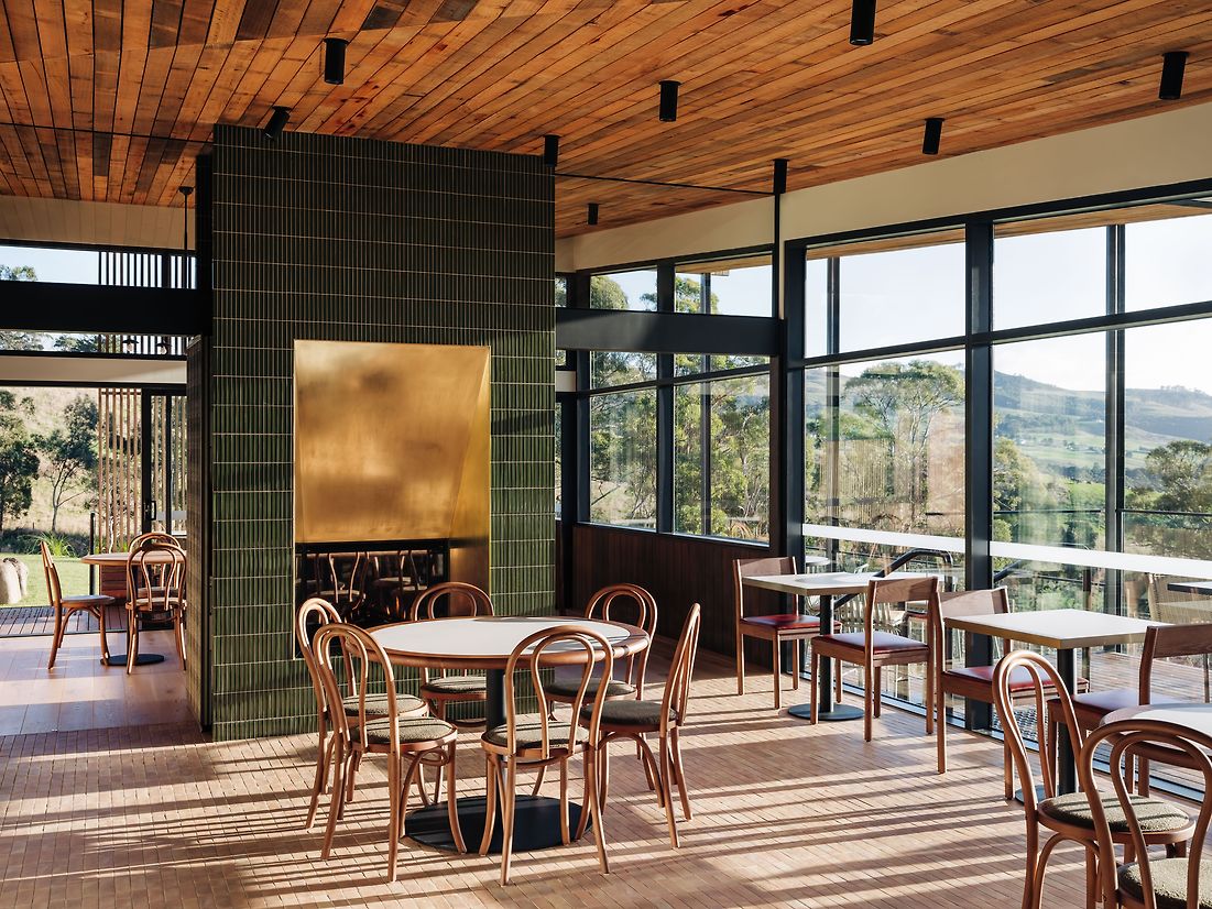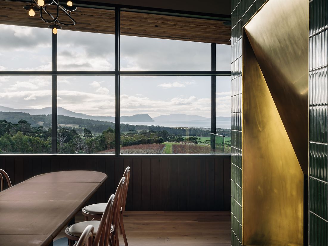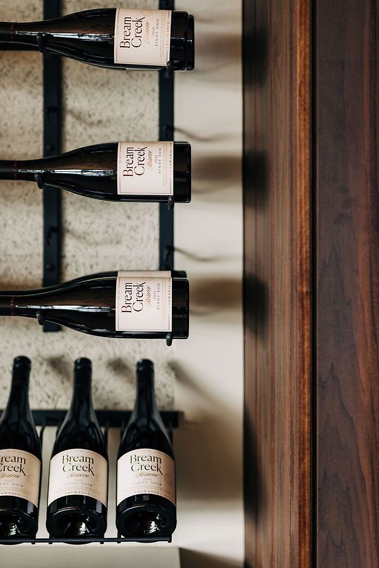 Our design drew inspiration from the beautiful environment of the Bream Creek vineyard, Tasmania. The space has been thoughtfully designed to sit quietly alongside the sweeping views of Marion Bay, and is the first cellar door for the prestigious wine label, Bream Creek. We designed a space that paid homage to the rugged textures and naturally derived colour palette in an architectural form that sits gently in the surrounding landscape.