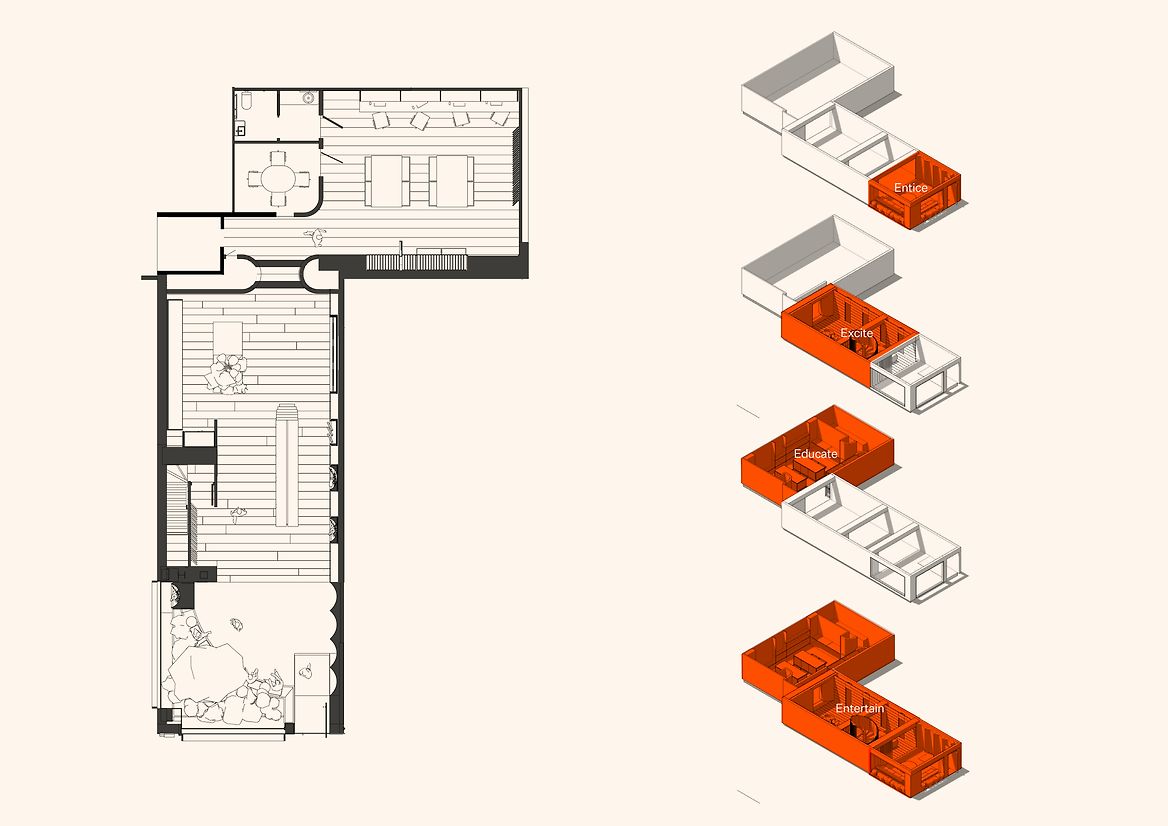 Designed as a sequence of meaningful interactions, the showroom connects visitors to the brand’s EcoSystem across four curated experiences: Entice, Excite, Educate, & Entertain.