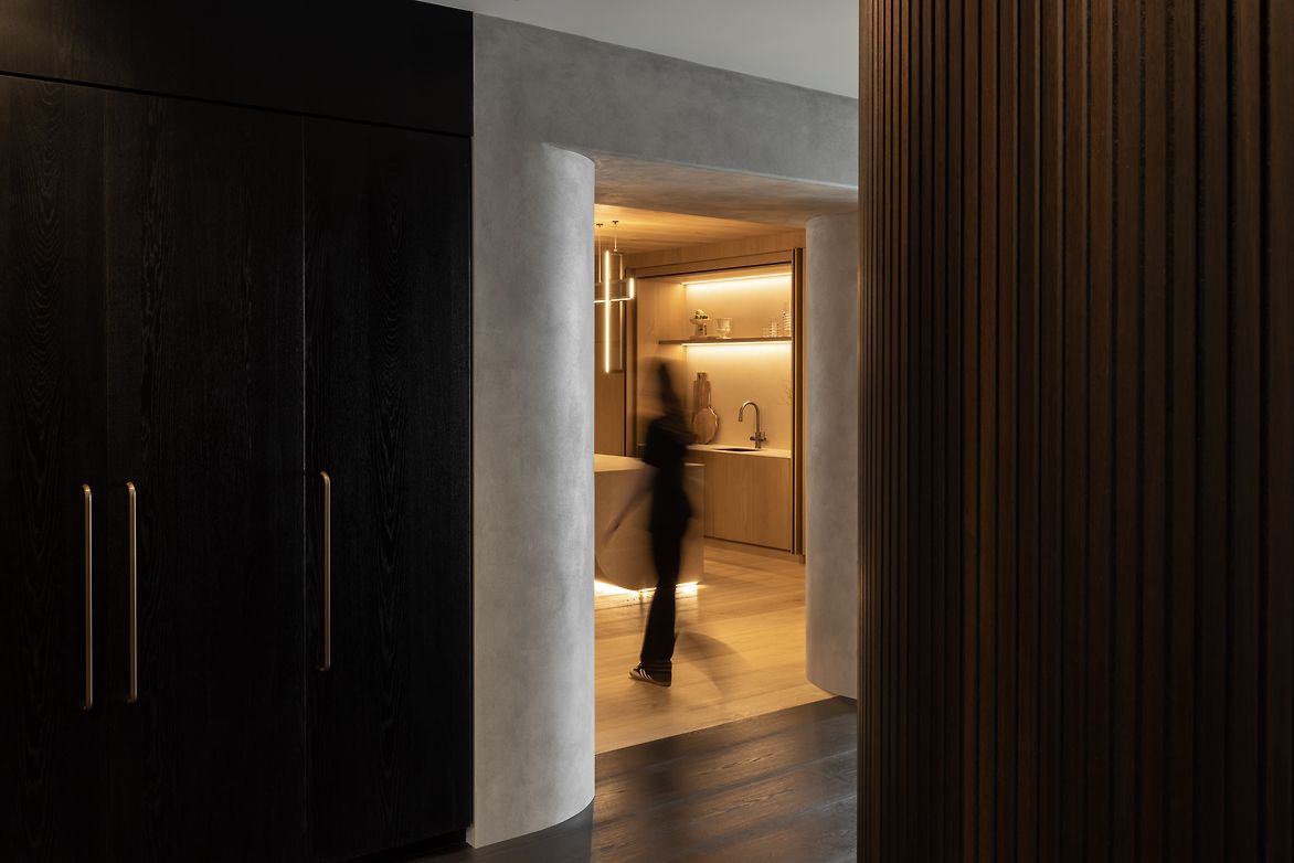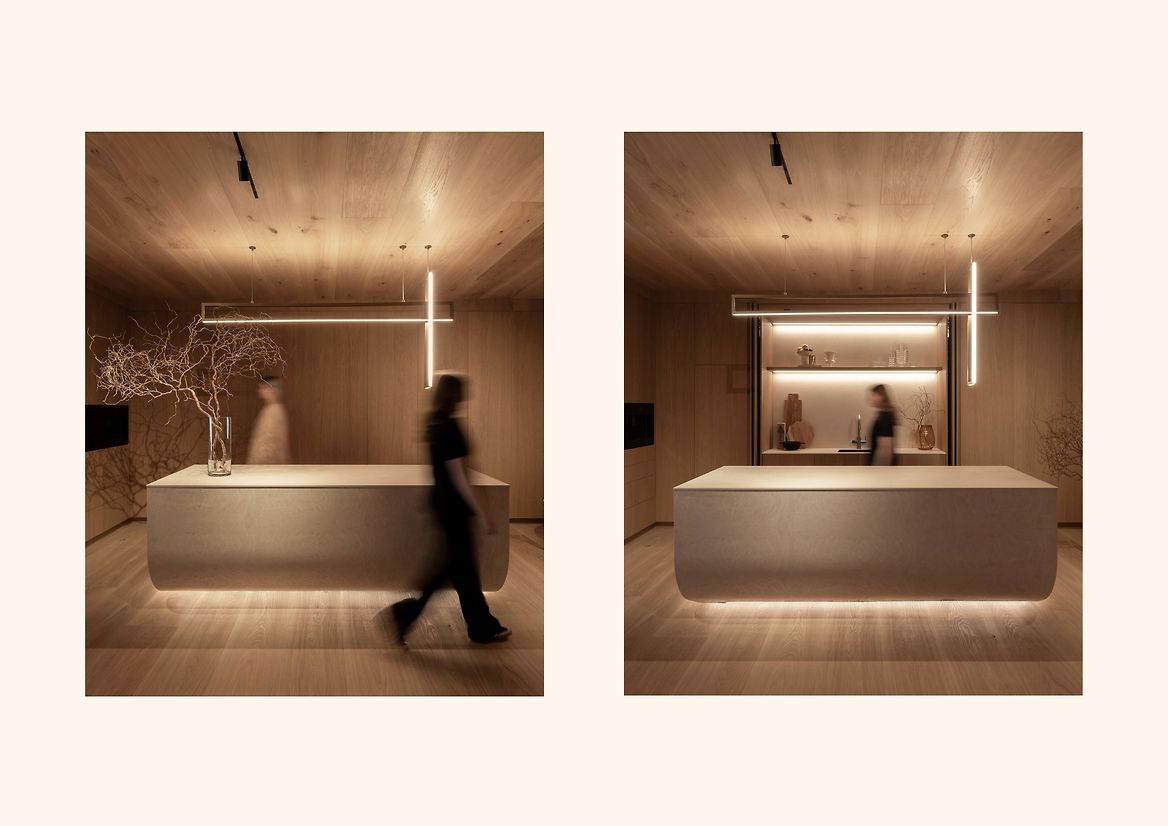 Feature elements like the veneered island and cabinetry showcase not only craftsmanship, but also the complex performance demands timber can meet in contemporary design, aligning with VidaSpace’s commitment to sustainability and innovation.