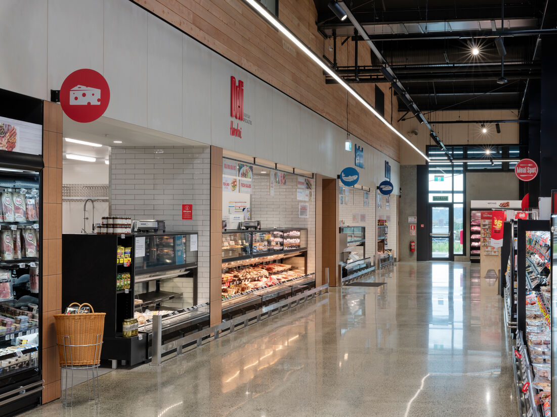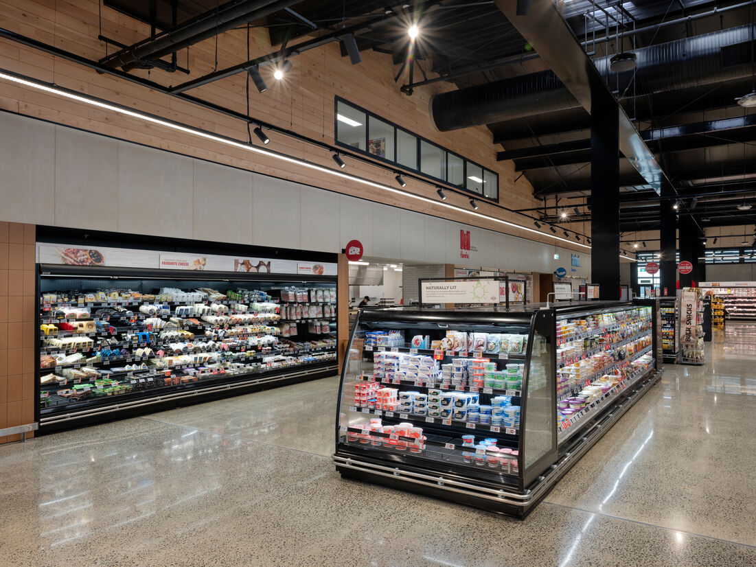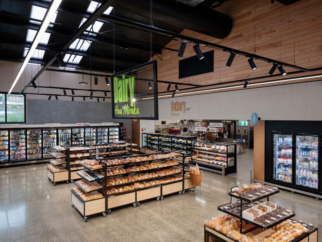 New World Hobsonville provides the quality of design that reflects the brands quality of product, while creating a convenient and enjoyable experience. Balancing the commercial requirements of a large format retail operation but understanding that food and beverage retail has links to socialization. It seeks to establish and deepen relationships with the customer base by exposing them to new experiences and products. Celebrating the theatre of operation, allowing the product to be the focus, constantly leading with fresh throughout the store and creating a space that customers looked forward to visiting were key elements that set the New World Hobsonville experience apart from the competition.