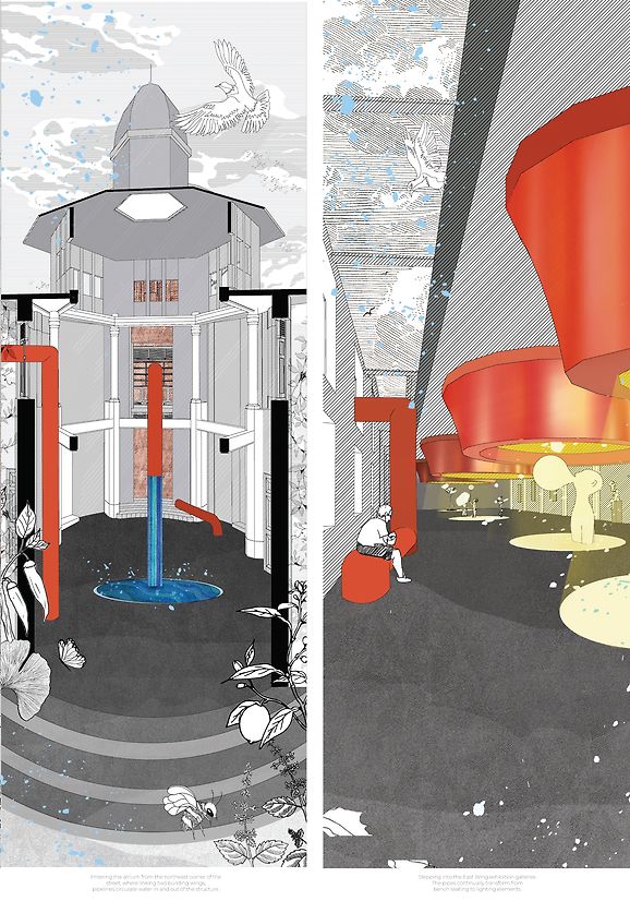However, despite the parasites living in the existing buildings, they live in abandoned buildings instead. This creative practice research explores parasitic architecture's potential to breathe new life into abandoned buildings once again.