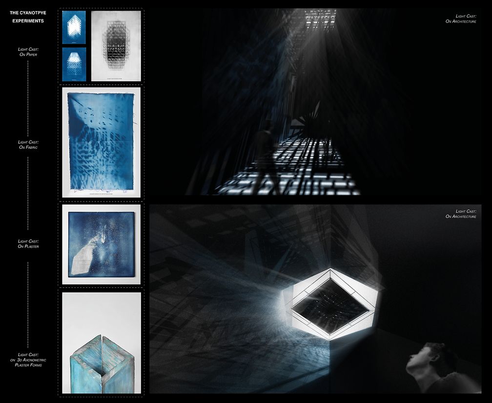 The cyanotype process applied to architectural space creating a phenomenological experience: