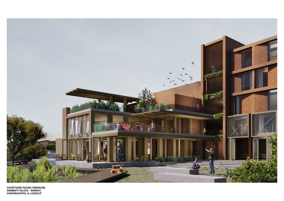 Kūwaha proposes a mixed-use build-to-rent development – a “gateway” into the housing continuum for the Whakatāne region. Designed with transience and longevity in mind, the scheme offers an alternative to the current housing stock of detached dwellings, providing compact residences for individuals and families in between stages of life. A move from the standalone home. A new typology for the changing region.
