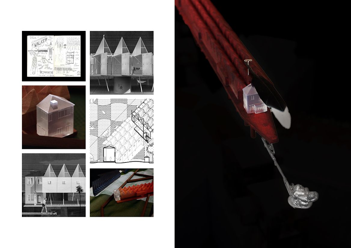The culmination of work presents an architecture on wobbly or wiggly (Mark Wigley) foundations. The Garden is a woven tapestry of bush, pasture and beach. The Elongated Shed indigenizes Shed 10, and cultural anxieties are dealt to with artistic licence, hybridising and hijacking artist Peter Robinson and Colin McCahon’s works, to read: "Boy Am I Scared of Cultural Appropriation Eh!”. Walker Way, a housing scheme, portioned Parekōwhai’s Lighthouse in two. Misty ‘n' Foggy flipped the Cloud on its head; inverting it to shade on a crane-like structure, and ‘jacking it up’ on wheels to actually perform like a cloud. Lastly, a library was tensioned to the wharf. Athenaeum, a translucent ivory tower, hangs off the edge, haunting it like a ghost. Literary-based research is materialised through intertextual storytelling and rigorous sincerity.