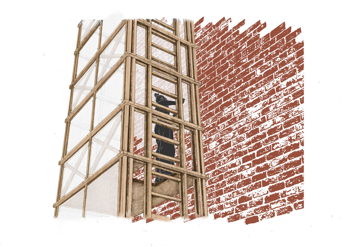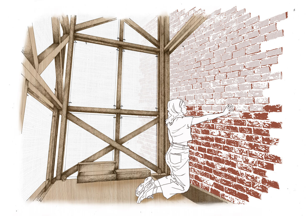 This project re-frames the perception of dormant, traumatized architecture, afflicted by un-inhabitation and reconstruction. By creating a practitioner, patient relationship between myself and a body of brick the building becomes a relatable and recognizable character for the surrounding communities, who have experienced know the trauma of earthquakes. Through this act of care I can uplift the building’s character and face, renewing its place in the community and culture of the wider site, to celebrate longevity and trauma as part of its character.