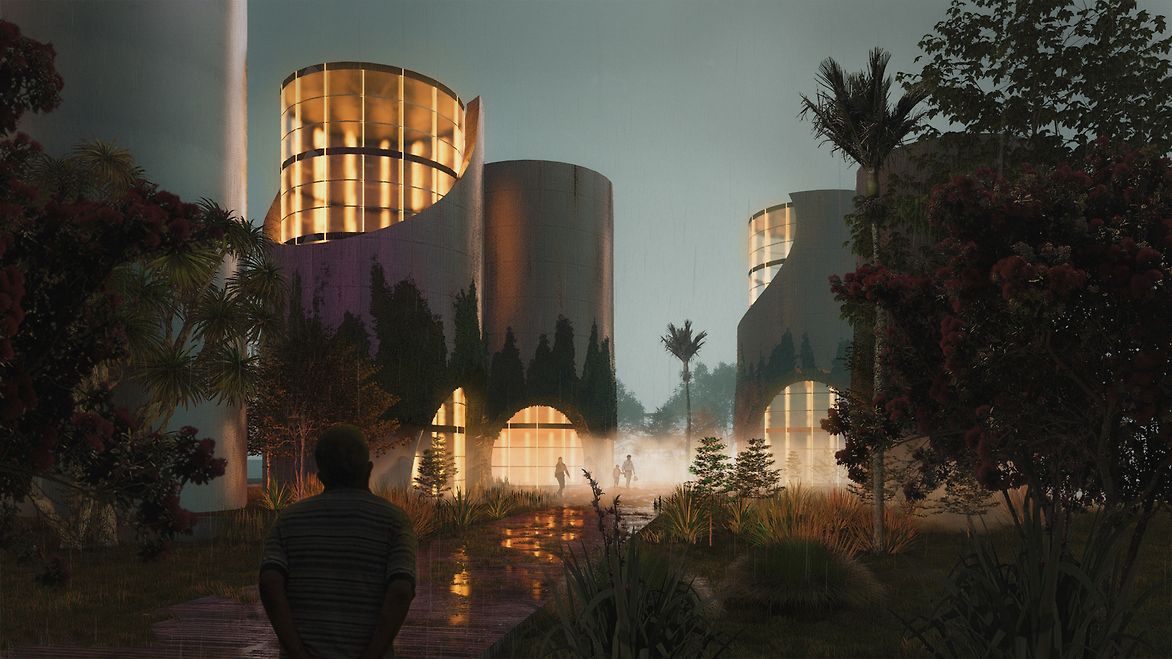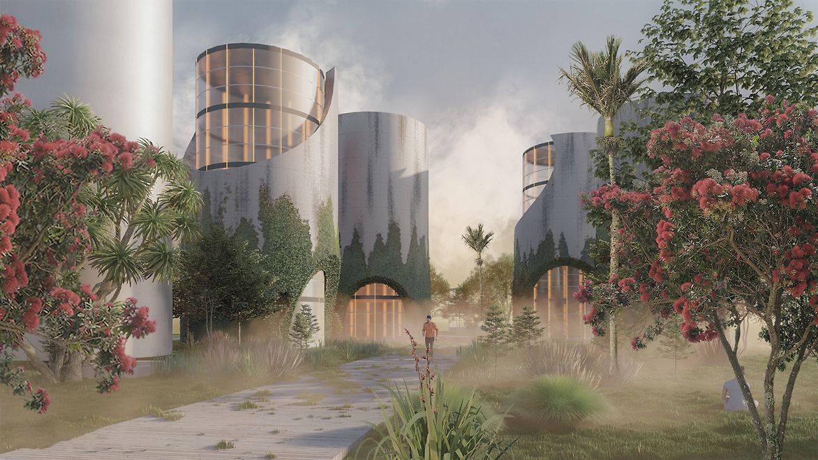 Four modules have been developed - event spaces, farming silos, hangi pits, and insect hotels - to support the reclamation process, acting as catalysts to foster a symbiotic relationship between the land, water, people, and other living creatures.
