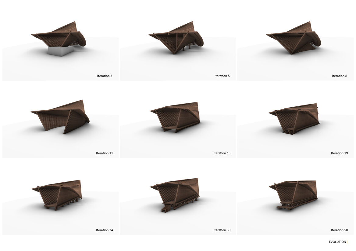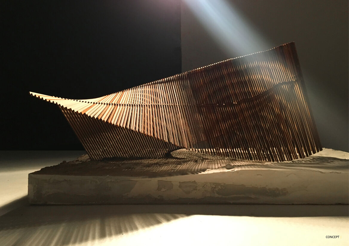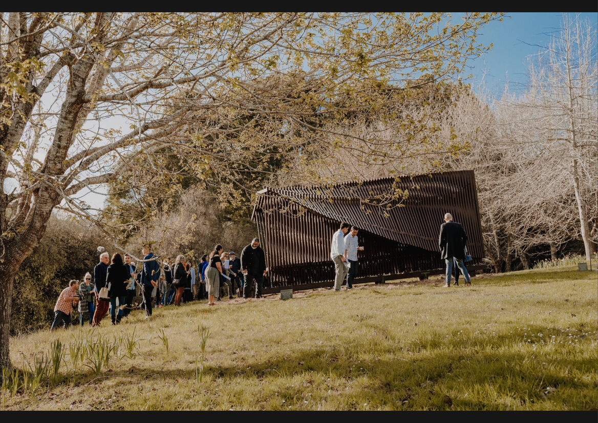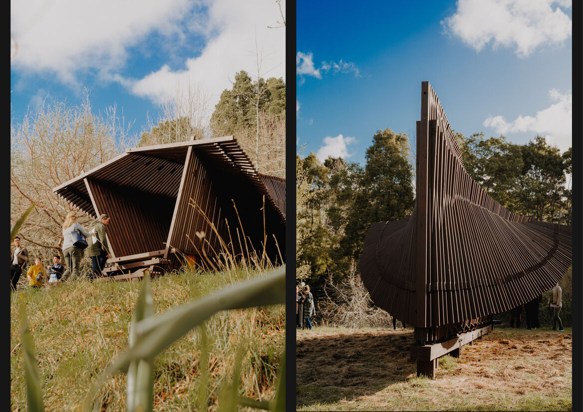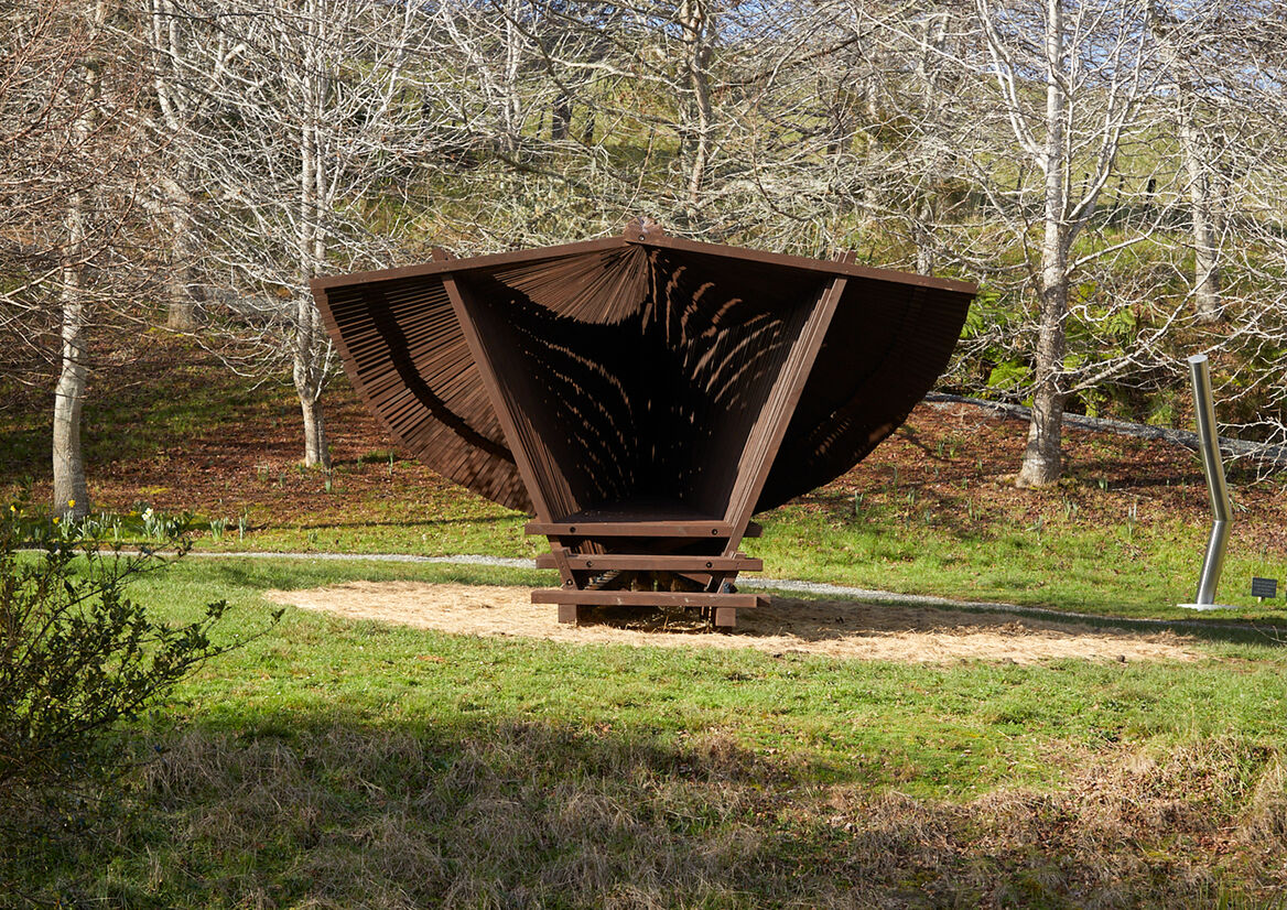 Wonderfully tactile and mesmerising in form, the wood pavilion is a piece of public sculpture that can be inhabited to uplift the spirit of the occupier.
