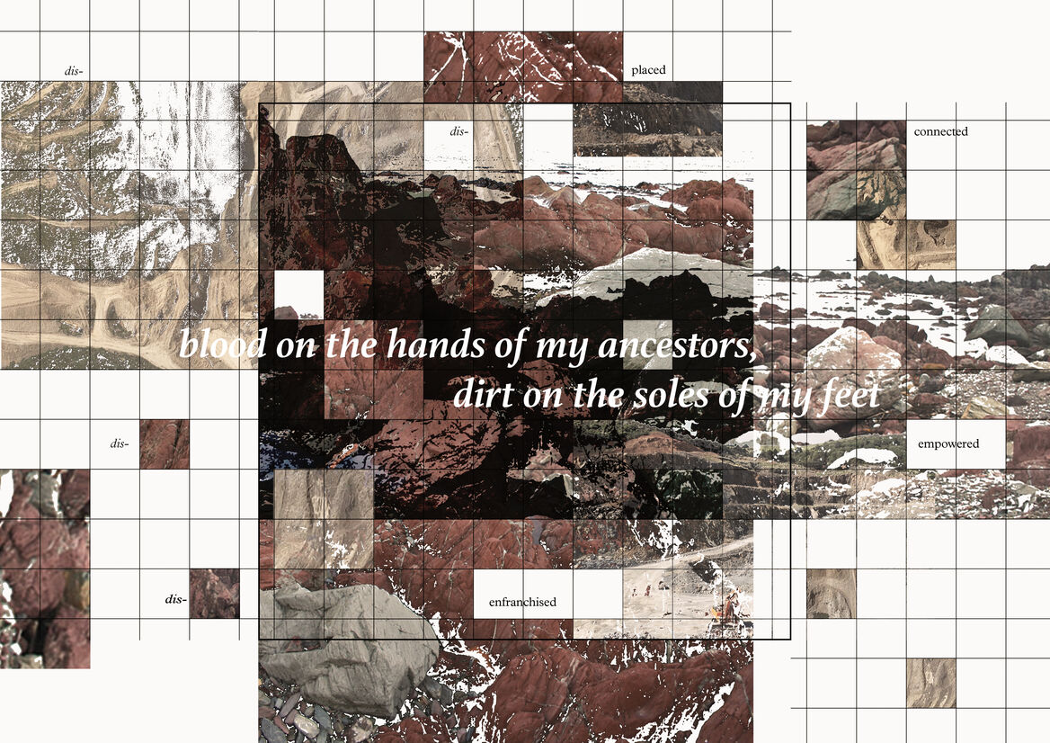 The colonisation of Aotearoa is ongoing, as exhibited by the prevailing domination of westernised discourse and systems of power within present day society. Blood on the Hands of My Ancestors, Dirt on the Soles of My Feet focuses specifically on the trauma resulting from historic and ongoing ecocide and displacement in Wellington.