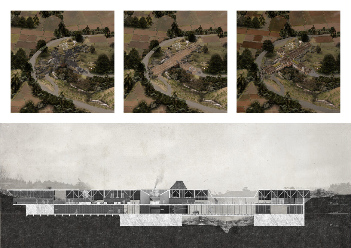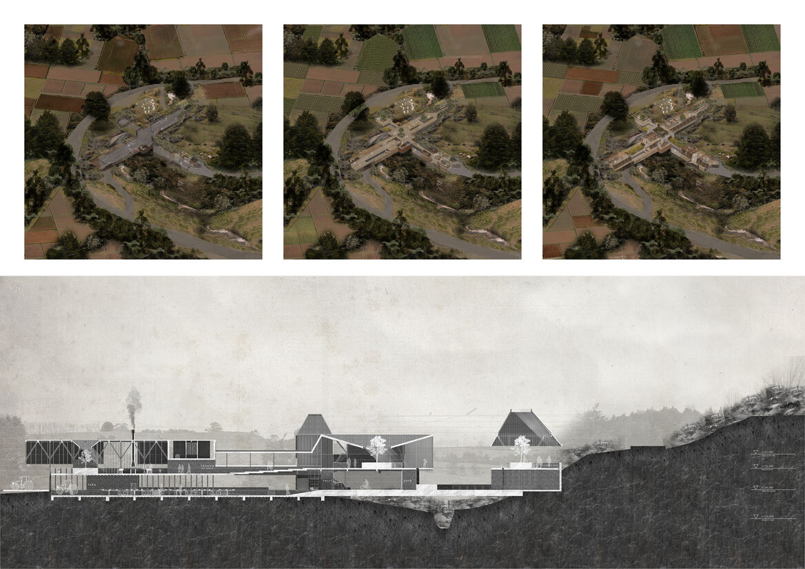 The architectural proposition explores the idea of an alternative approach to sustainability. This utilises contemporary knowledge of organic and regenerative farming practices, while viewing food production and storage through a historic and indigenous lens. These alternative influences have cultivated a nuanced understanding of seasonal, landscape-sensitive production and land use, which has filtered through every aspect of the project.