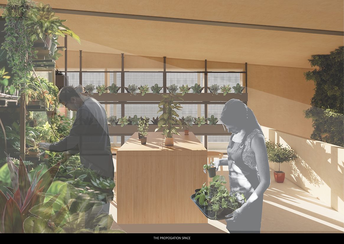 knowledge exchange. This spatial narrative forms a loop of learning, making the growing process visible, embodied,