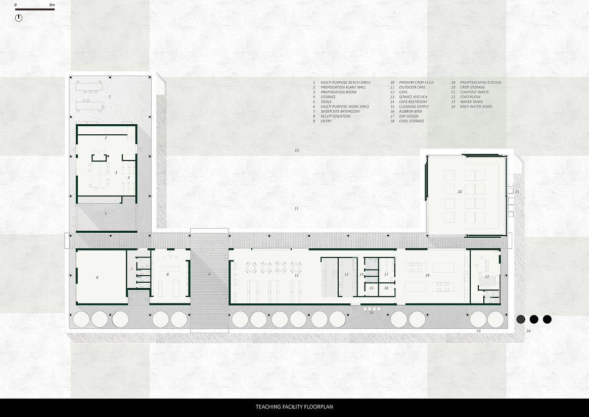 At the core of the project is a circular educational model housed within the Teaching Facilities, five interconnected