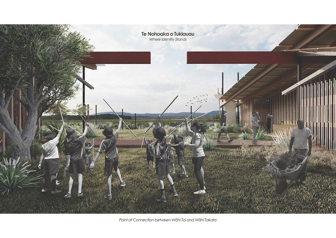 Te Nohoaka o Tukiauau: A Place to Stand responds to a pressing disconnection between people and whenua, and the cultural knowledge once tied to the wetland. While architecture alone cannot restore what has been lost, the design acts as a living vessel for intergenerational knowledge transmission — a threshold that invites engagement with the wider landscape. Mātauraka Māori is not merely displayed but woven into lived experience, offering opportunities for active participation and deeper connection. Through this process, visitors are encouraged to carry knowledge forward, reshaping their relationship with the land and their role as kaitiaki.