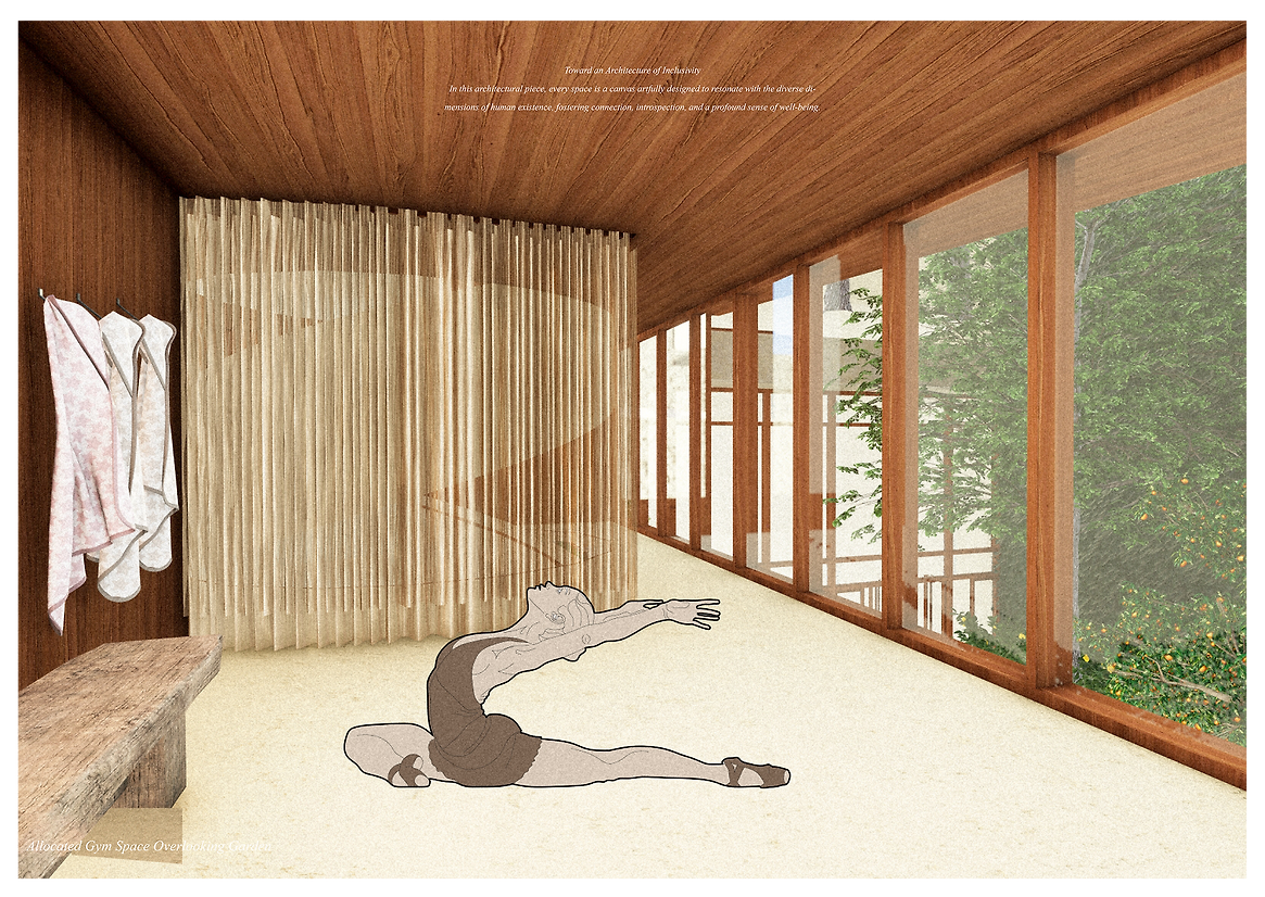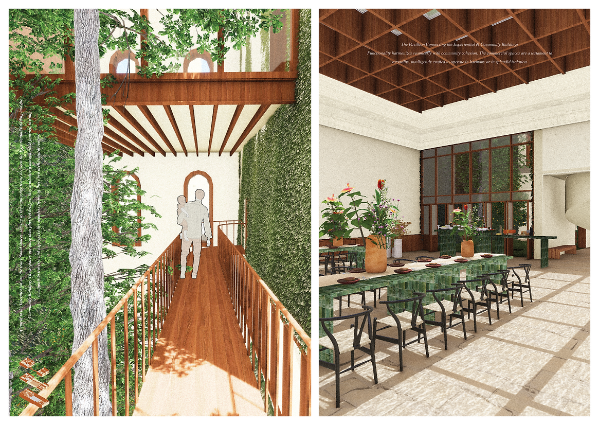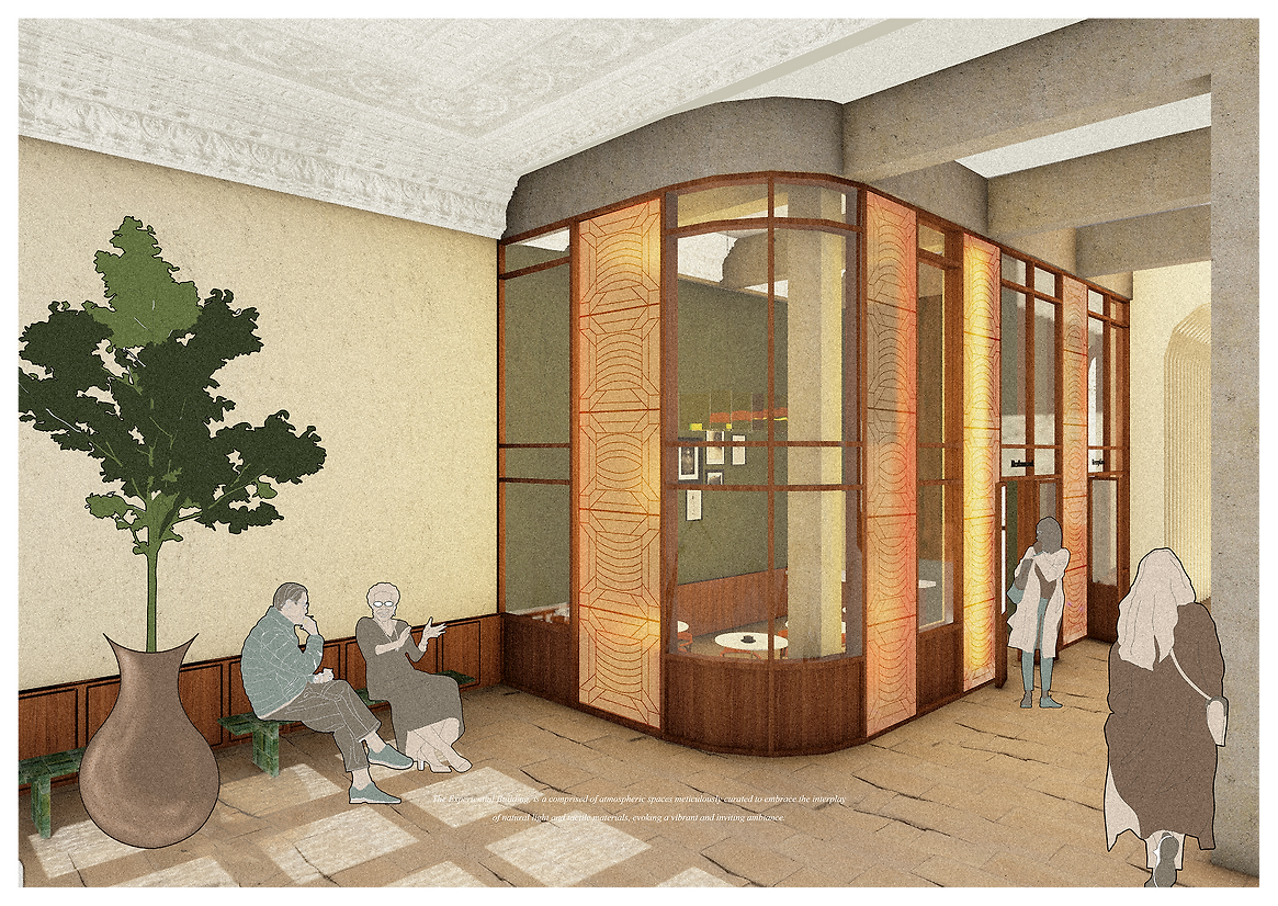 considered, paving the way for a seamless integration of heritage preservation and modern functionality. The program unfolds with a laissez-faire, human-centred ethos, where spaces are adaptable yet inherently atmospheric. Delving into theories of Wabi-Sabi, Biophilia, and Nudge architecture, the outcome manifests as a series of thoughtfully curated spaces, each designed to evoke a sense of wonder and tranquillity.